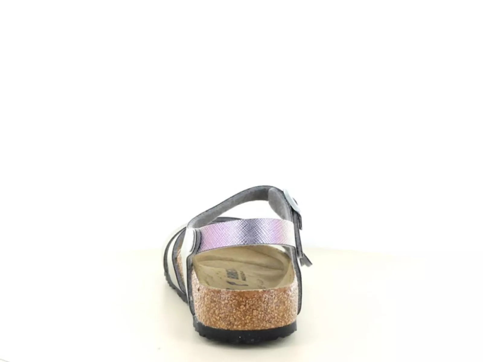 Die Birkenstock Kumba Sandale vereint Stil und Funktionalität für Mädchen, die Wert auf Komfort und einen modischen Look legen. Das Birko-Flor®-Obermaterial mit glänzender Oberfläche bietet einen luxuriösen Look und ist gleichzeitig pflegeleicht und langlebig. Die drei verstellbaren Schnallen, einschließlich des Knöchelriemens, sorgen für eine perfekte Passform, während das anatomisch geformte Fußbett die natürliche Fußform unterstützt und zu einer gesunden Haltung beiträgt. Die EVA-Sohle bietet hervorragende Dämpfung und macht jeden Schritt bequem – ideal für den Alltag.