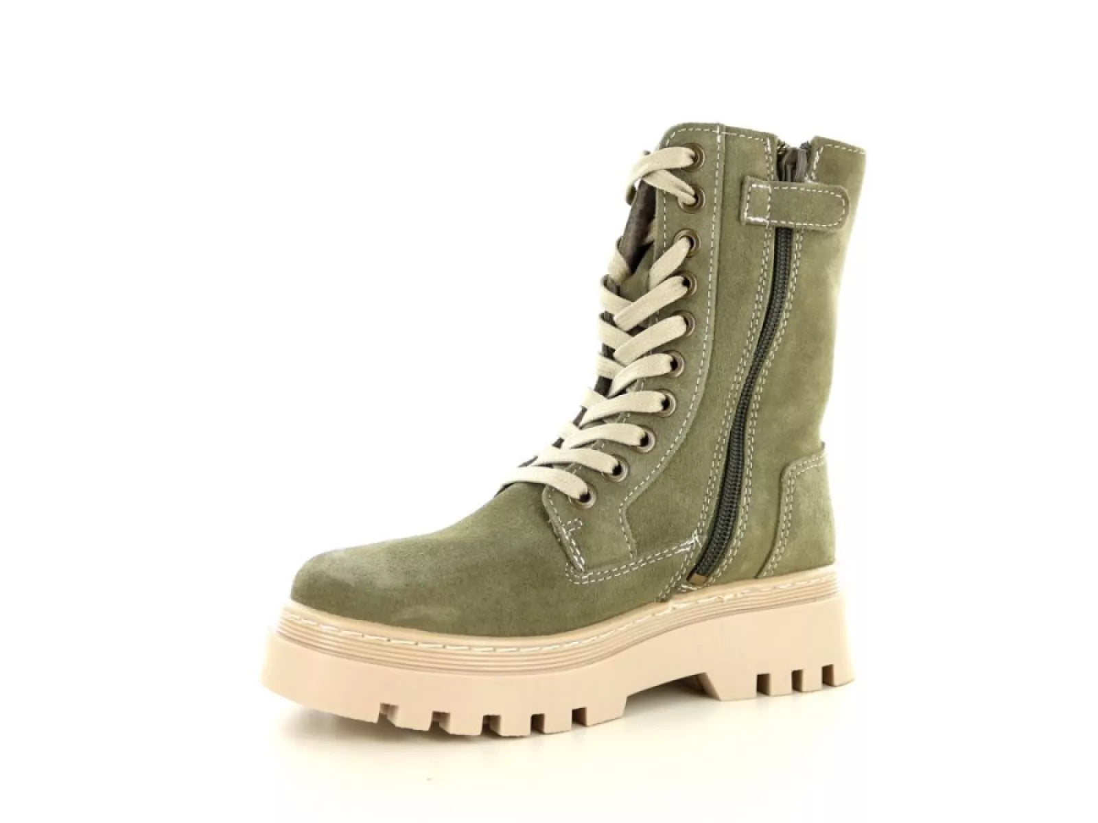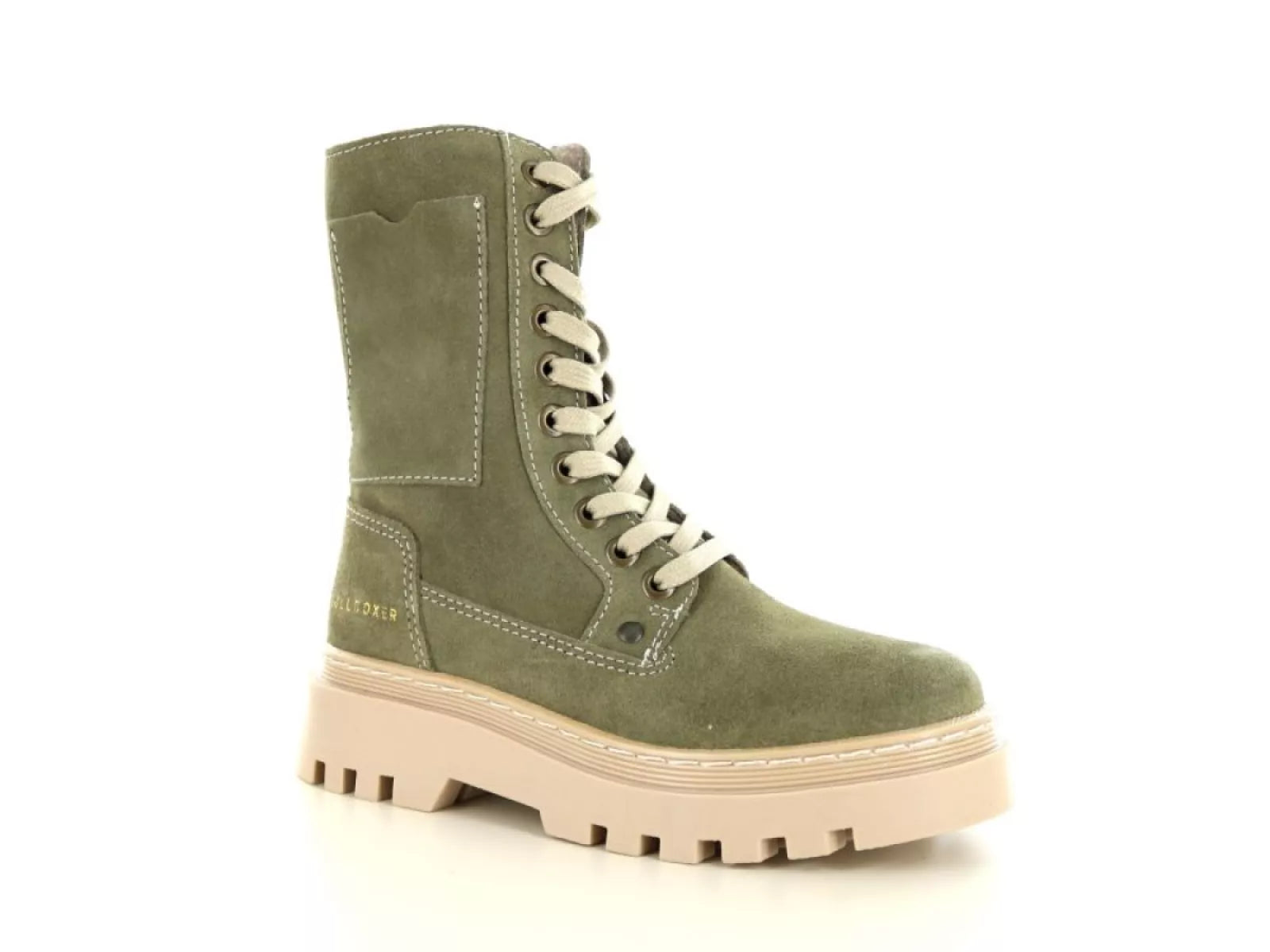 Der ALJ500E6C von Bull Boxer ist ein wunderschöner , robuster Schnürstiefel aus Wildleder für Mädchen . Dieser hohe Schnürschuh ist in der Farbe AVOCKX (grün) erhältlich. Der Verschluss erfolgt mittels Reißverschluss und Schnürung .
