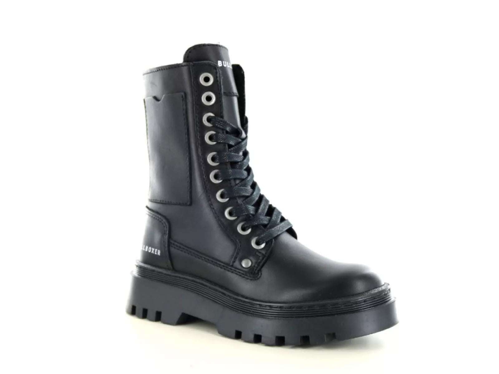 Der ALJ500E6L von Bull Boxer ist ein wunderschöner hoher Schnürschuh aus Leder . Dieser coole Bikerstiefel ist in der Farbe BLACKX gefertigt. Der Verschluss erfolgt mittels Reißverschluss und Schnürung .