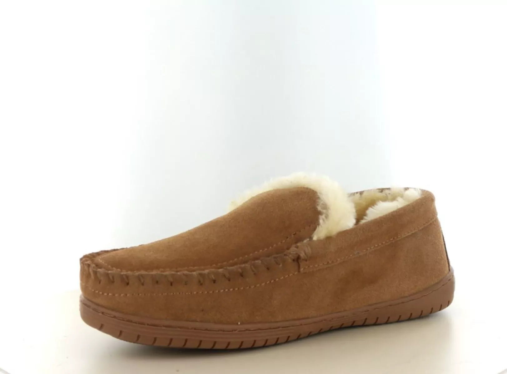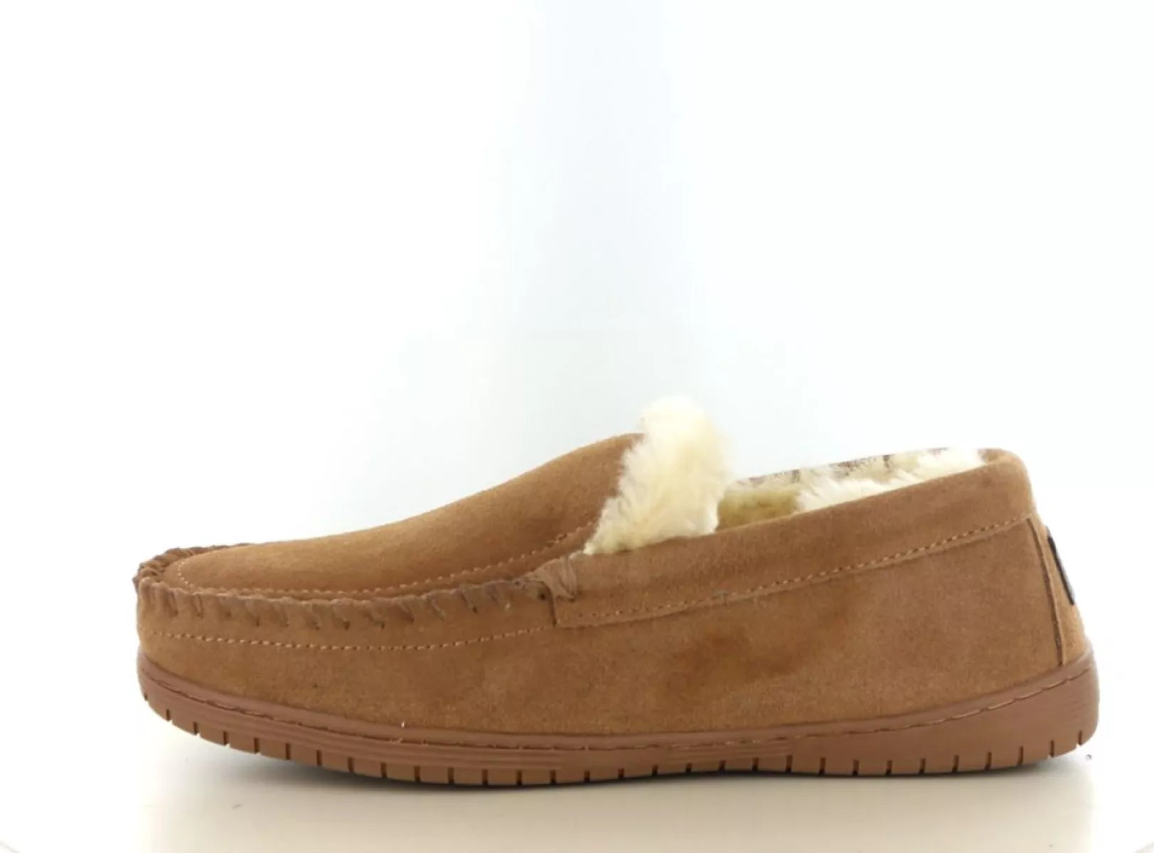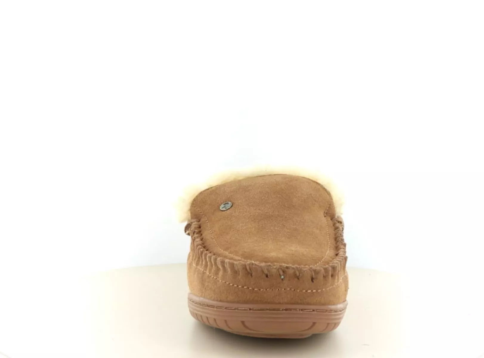 Warmbat Grizzly Men – Wildleder-Herren-Slipper mit geschlossener Ferse und Wollfutter in Cognac