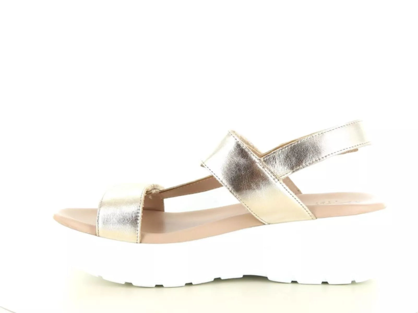 Die Panama Jack Noor Shine B1 ist eine elegante und bequeme Damensandale in stilvollem Gold. Das Obermaterial besteht aus hochwertigem Nappaleder, das für einen luxuriösen Look und Langlebigkeit sorgt. Das Lederfutter bietet atmungsaktiven Komfort – ideal für warme Sommertage.