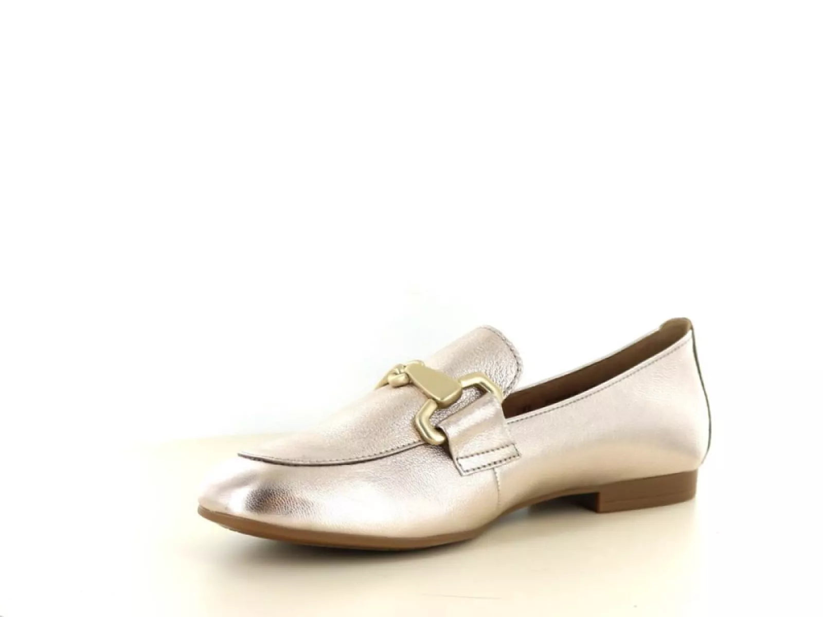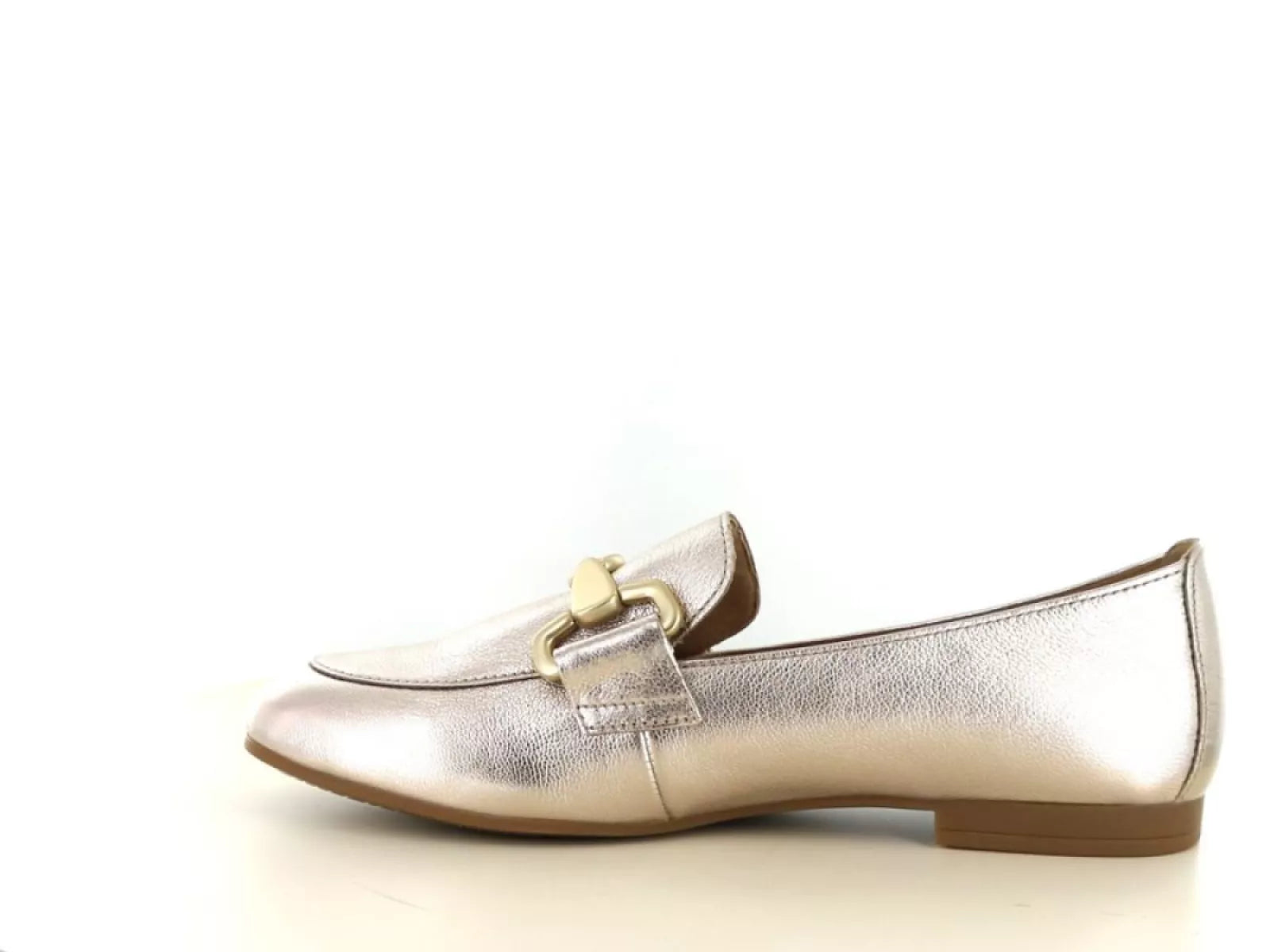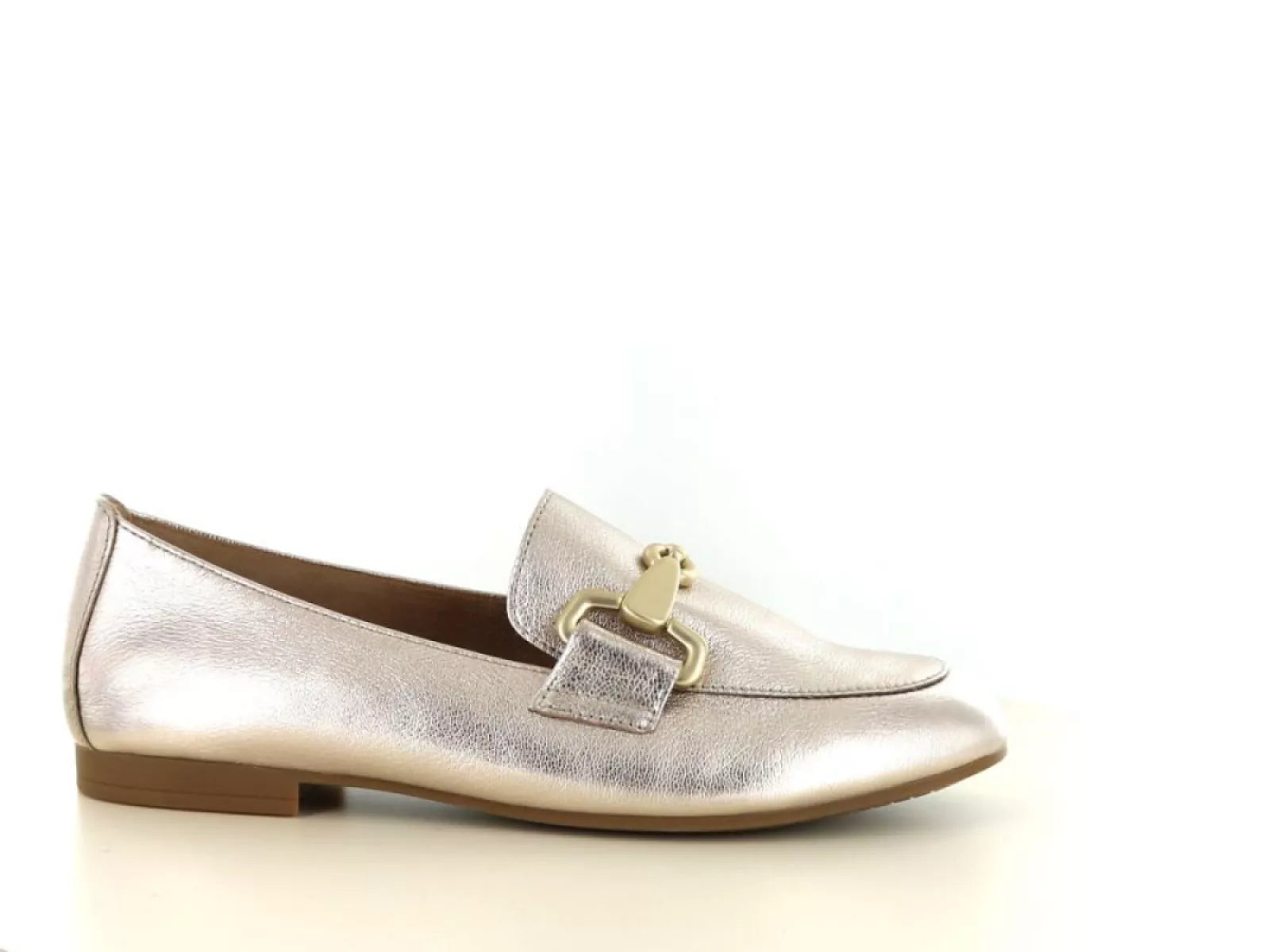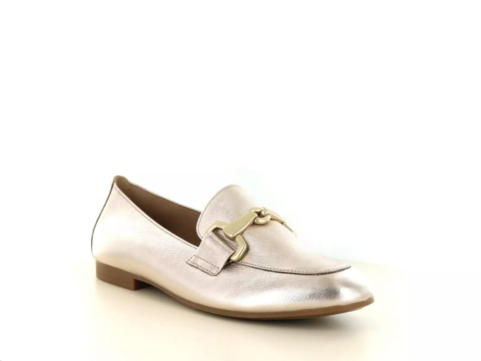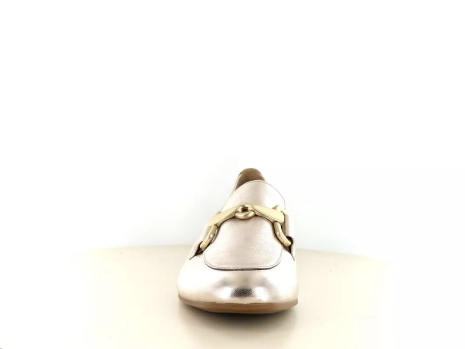 Die raffinierte Kombination aus Puder und Gold verleiht dem Loafer einen zeitlosen Look und lässt sich sowohl mit lässigen als auch mit formellen Outfits kombinieren. Dank des praktischen Slip-On-Modells ohne Verschluss lässt sich der Schuh leicht an- und ausziehen – ideal für Frauen, die Wert auf Stil und Komfort legen.
