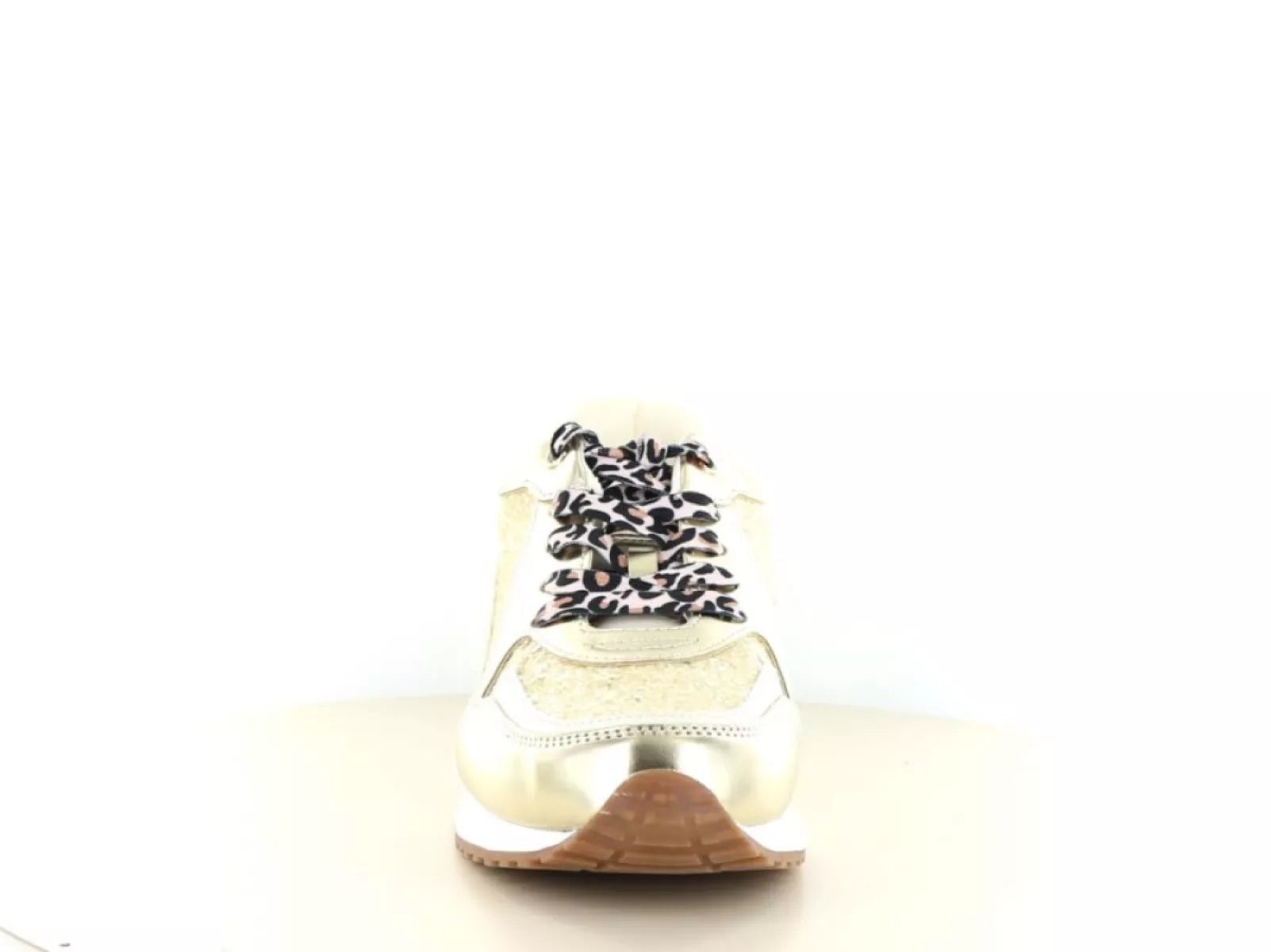 Der Schnürverschluss ermöglicht eine individuelle Passform und bietet zusätzlichen Halt und Komfort beim Gehen. Ob Sie im Park spazieren gehen, einen Tag im Büro verbringen oder einen Abend in der Stadt planen – dieser Sneaker passt zu jedem Anlass. Die dezente Goldbeige-Mehrfarbigkeit macht den Schuh zu einem echten Hingucker und lässt sich leicht mit verschiedenen Kleidungsstilen kombinieren, von lässigen Jeans bis hin zu einem eleganten Kleid.