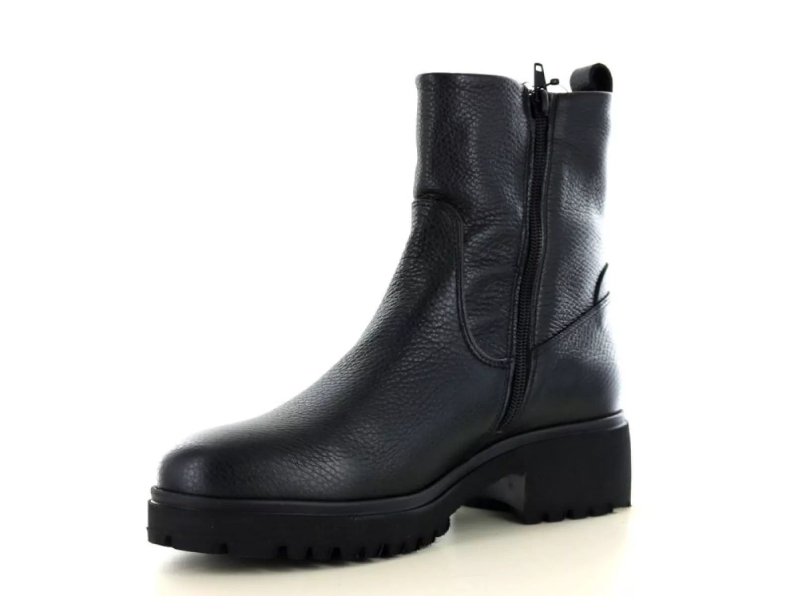 Der Sora Stiefel von Piedi Nudi vereint robusten Stil mit unvergleichlichem Komfort – ideal für Frauen, die einen vielseitigen und langlebigen Schuh suchen. Gefertigt aus hochwertigem Leder und in der eleganten Farbe 03.03 Schwarz , bietet dieser Stiefel nicht nur einen robusten Look, sondern dank der Weite H (breiter Leisten) auch eine hervorragende Passform. Das austauschbare Fußbett macht diesen Stiefel perfekt für orthopädische Einlagen, während der Reißverschluss ein einfaches An- und Ausziehen ermöglicht.