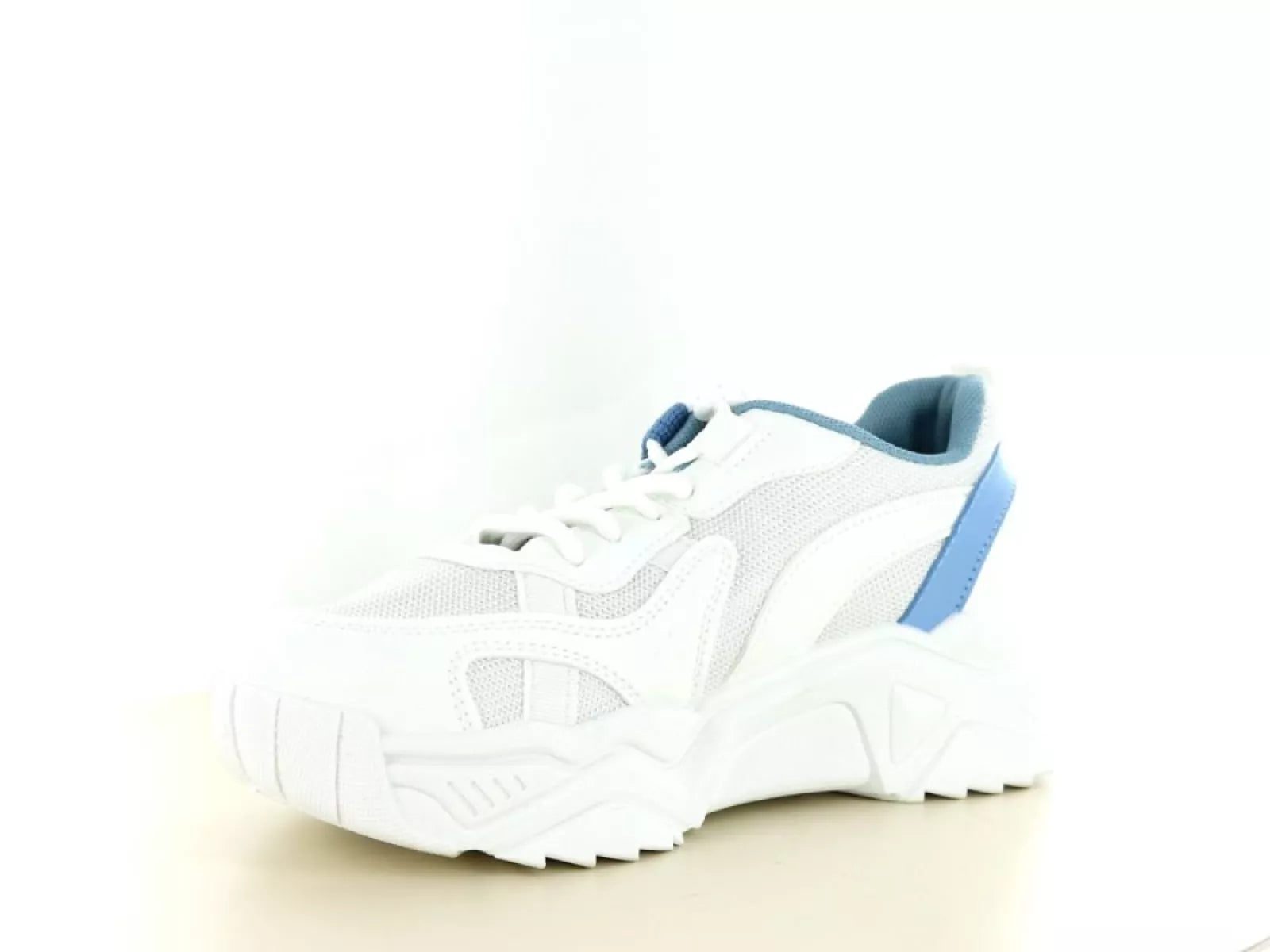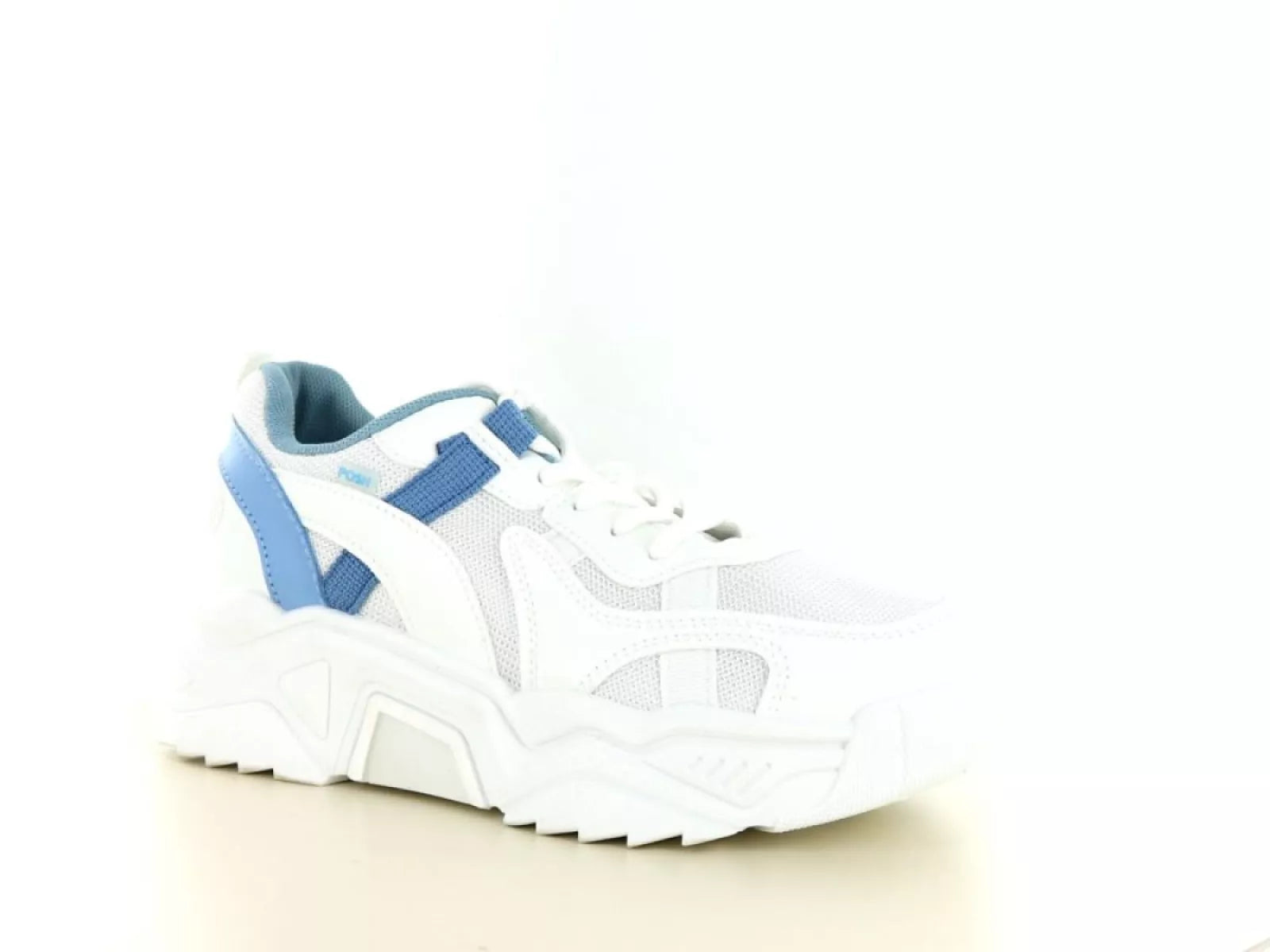 Der CSUMI Sneaker von Posh by PS Poelman ist eine elegante Wahl für Damen, die Wert auf Stil und Komfort legen. Gefertigt aus hochwertigem Synthetikmaterial, strahlt dieser Sneaker in Weiß/Hellblau Modernität aus. Der Schnürverschluss sorgt für sicheren Halt und ermöglicht gleichzeitig ein einfaches An- und Ausziehen.