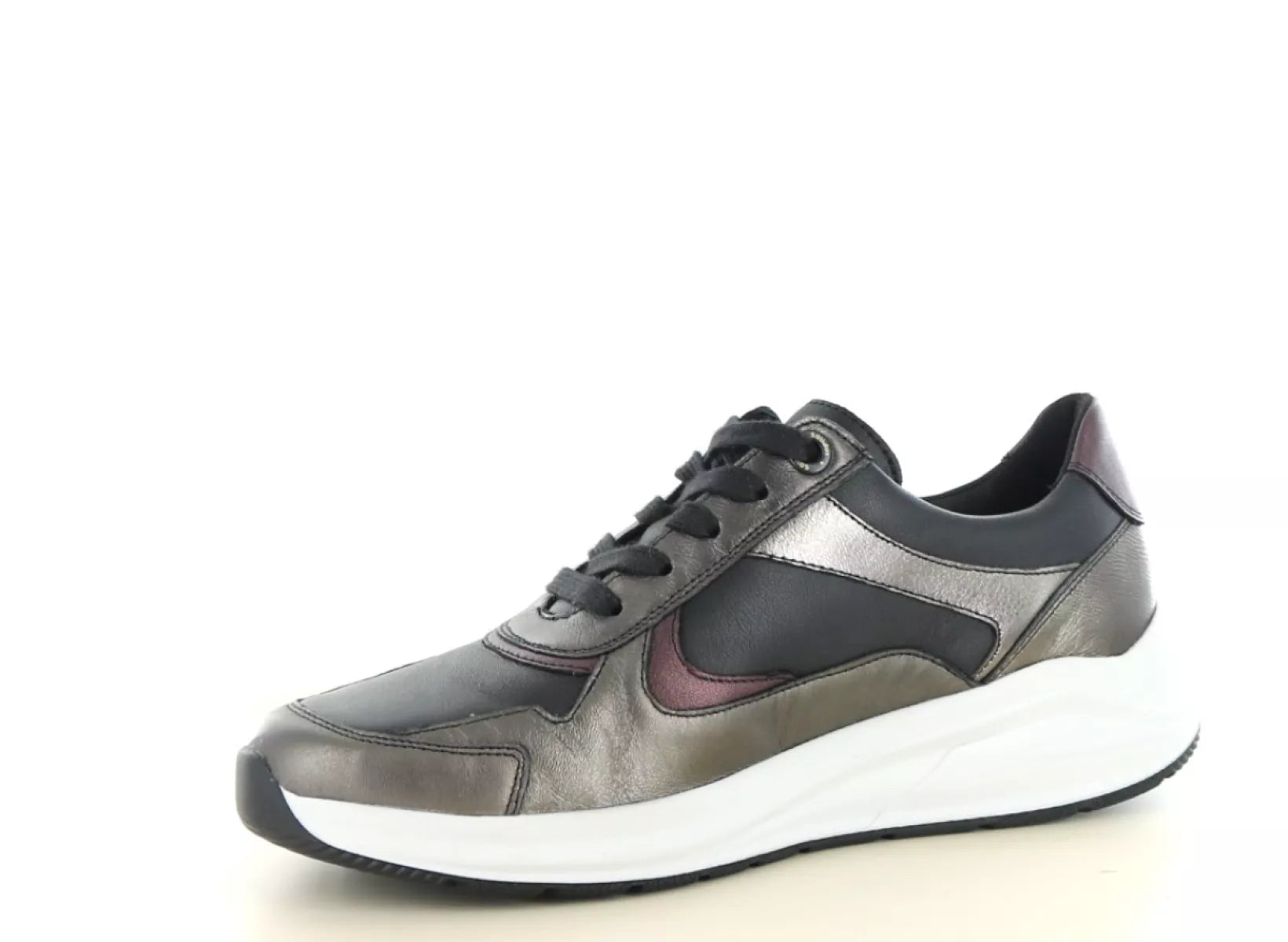 • Luxuriöser Damen-Sneaker aus hochwertigem Leder in Metallic-Schwarz-Kombination