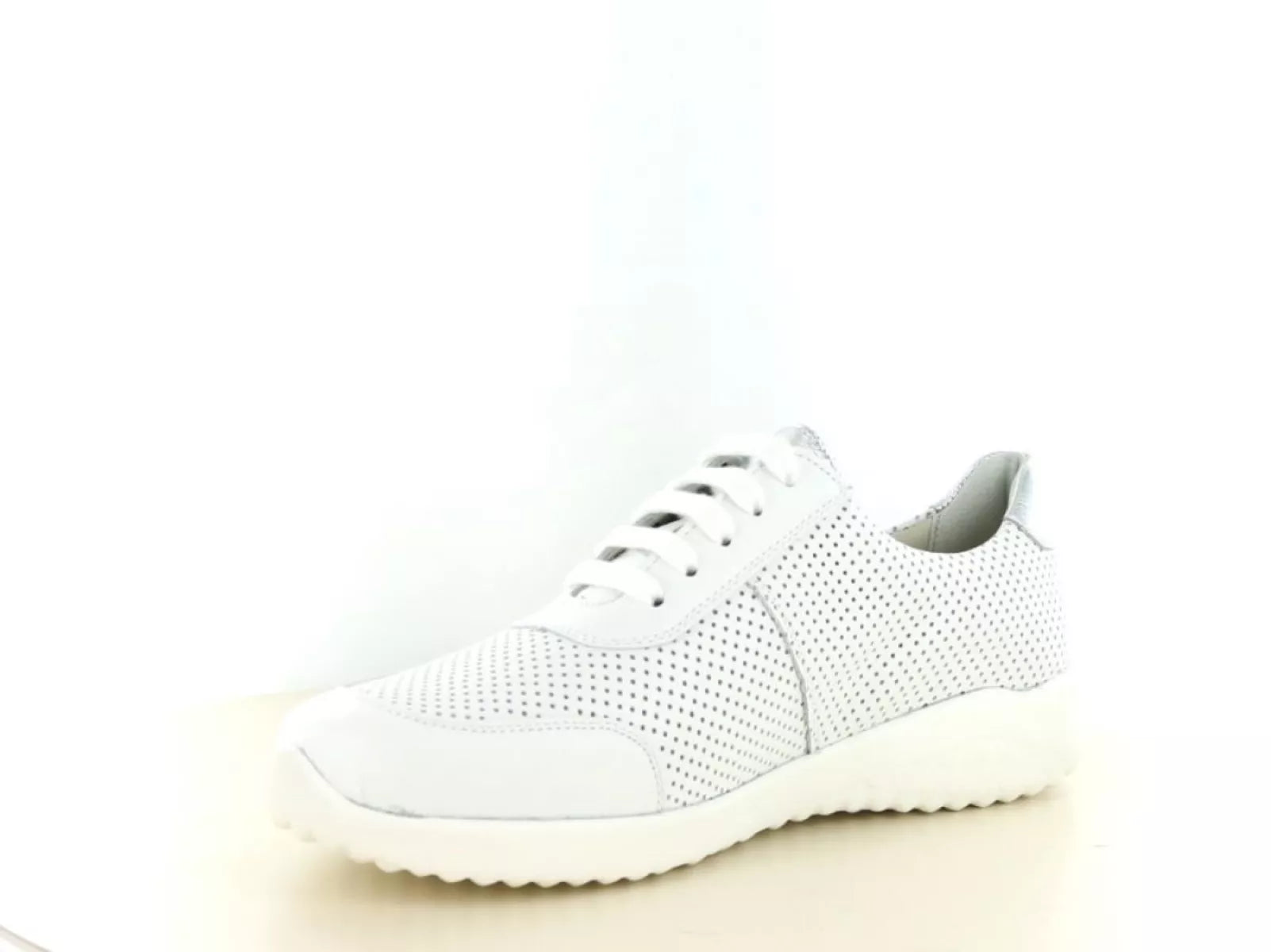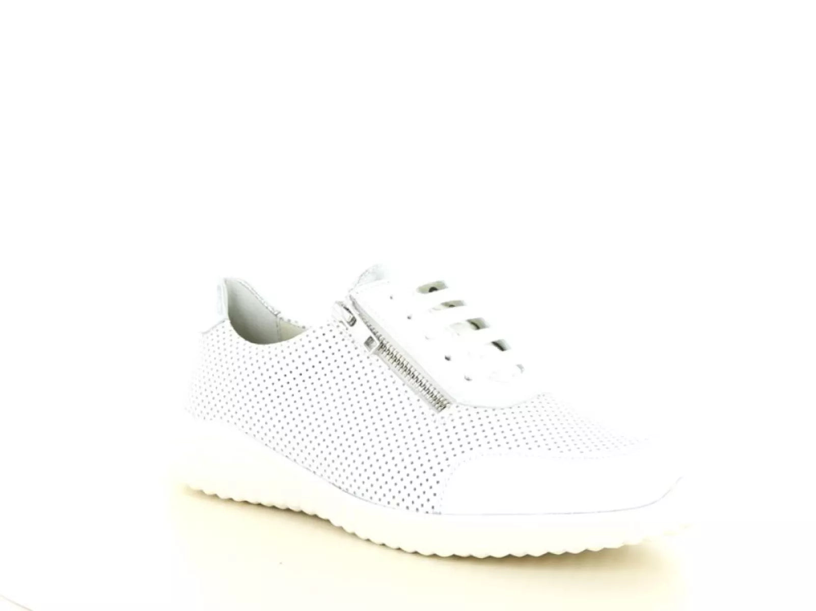 Der Solidus 60003 Schnürschuh aus weißem Leder ist die perfekte Wahl für Damen, die eine Kombination aus Komfort, Halt und Stil suchen. Dank des hochwertigen, perforierten Leders bleibt der Schuh luftig und atmungsaktiv – ideal für den Alltag, auch bei wärmerem Wetter.