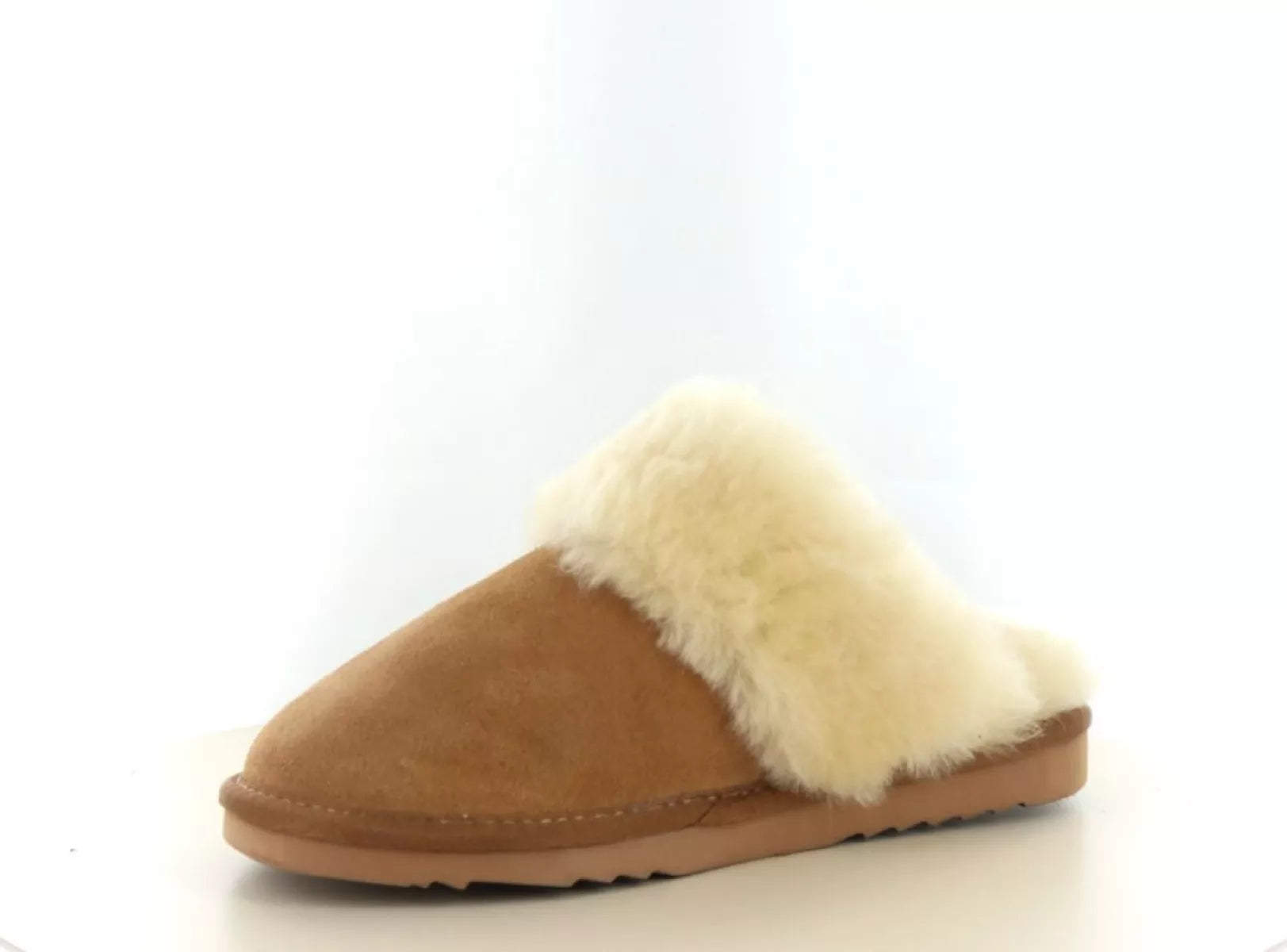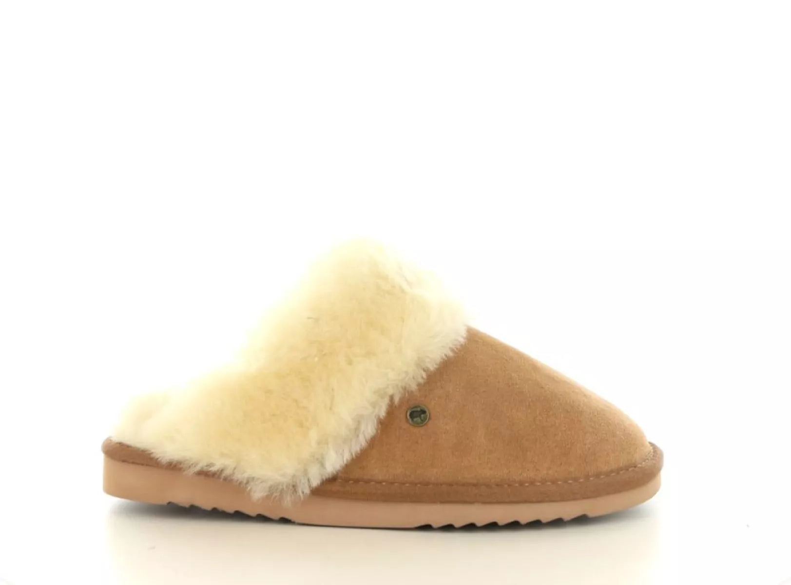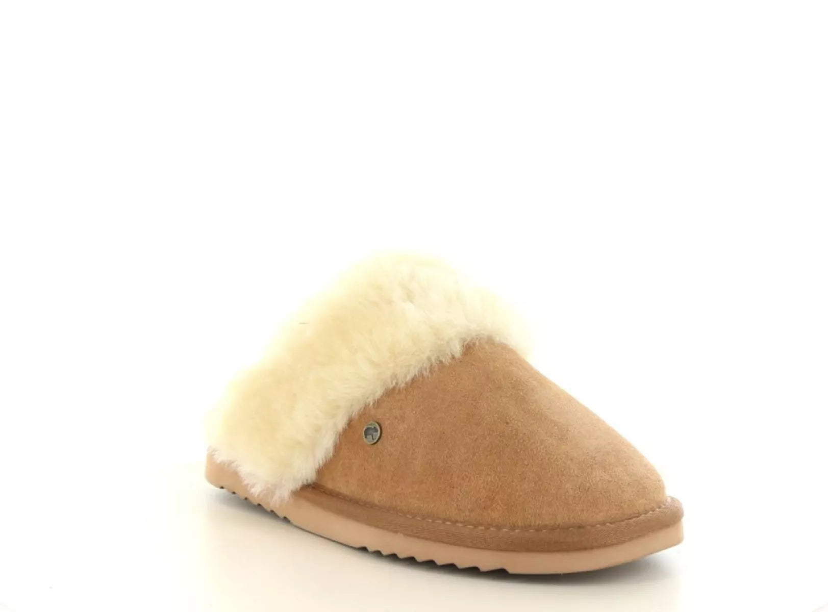 Warmbat Flurry Woman – Luxuriöser Wildleder-Slipper mit Vollwollkragen in Cognac