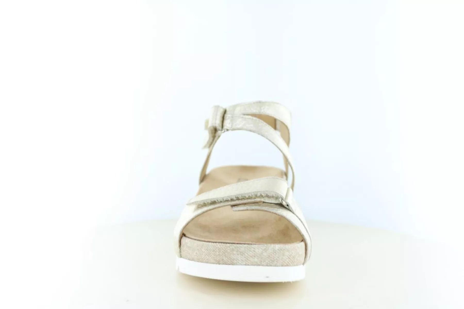 Das Obermaterial dieser Durea Damensandale besteht aus weichem Veloursleder und Leder und besticht durch seine edle Platinfarbe (1024) . Der helle Metallic-Ton verleiht der Sandale einen stilvollen und frischen Look, der sich vielseitig mit Sommeroutfits kombinieren lässt, zum Beispiel mit einem luftigen Kleid, einem Rock oder einer lässigen Hose.