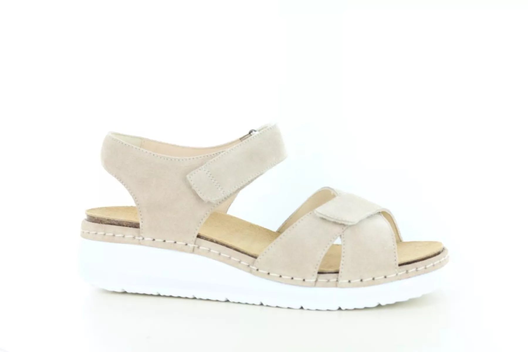 Das Obermaterial dieser Durea-Sandalen besteht aus weichem Wildleder in einem eleganten Taupe-Ton (2067) . Dieser neutrale Farbton harmoniert mühelos mit nahezu jedem Sommeroutfit, vom luftigen Kleid über lässige Hosen bis hin zum Rock.