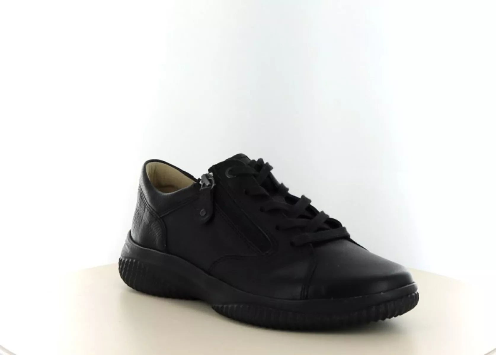 Het bovenwerk is gemaakt van hoogwaardig, soepel leer, wat zorgt voor een prettige pasvorm en langdurig draagcomfort. Dankzij de brede wijdtemaat G½ biedt deze veterschoen extra ruimte bij de voorvoet, waardoor hij zeer geschikt is voor dames met bredere of gevoelige voeten. De vetersluiting zorgt ervoor dat de schoen goed aansluit en optimale stabiliteit biedt tijdens het lopen.