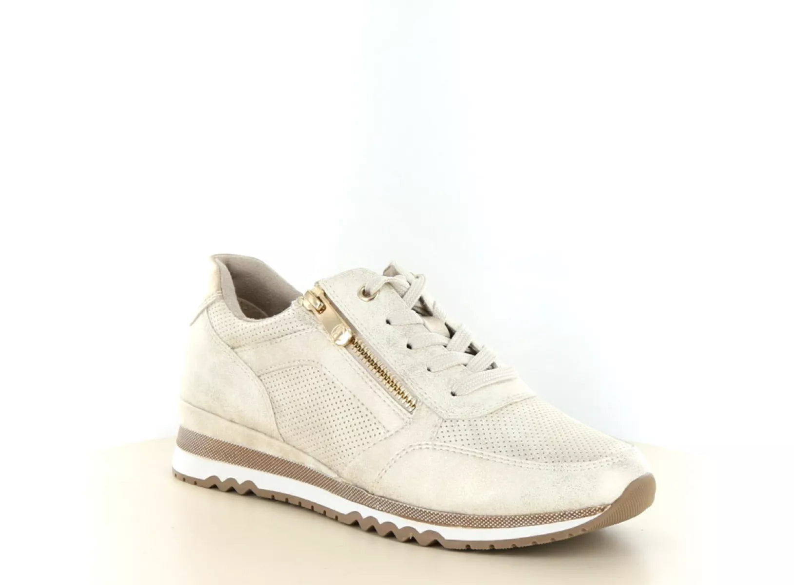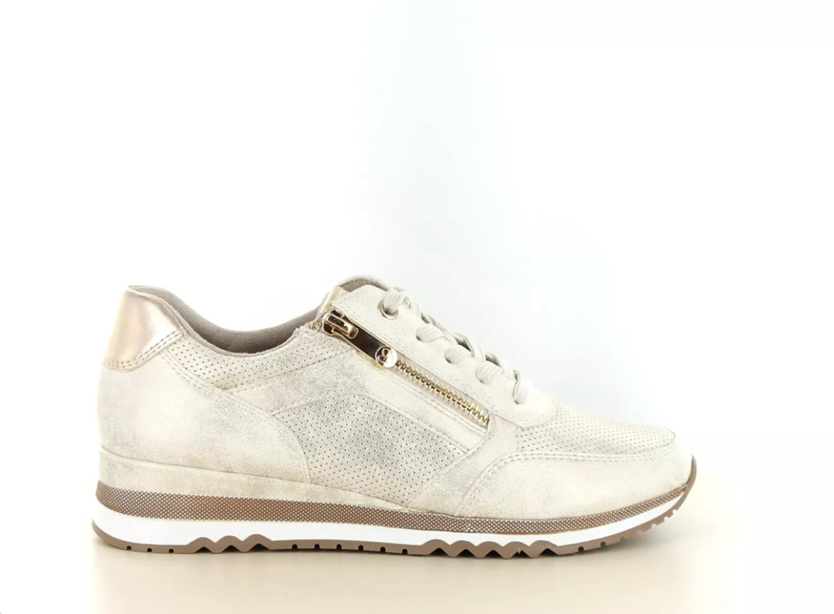 Der Marco Tozzi 2/23782-41 ist der perfekte Damensneaker für alle, die Stil und Komfort mühelos vereinen möchten. Dieser modische Schnürschuh in der Farbe 447 Dune Metallic Combi besticht durch seinen luxuriösen, leicht schimmernden Look, der sportlich und elegant zugleich wirkt. Ideal für jeden Tag, ob beim Shopping, im Büro oder auf einem Städtetrip.