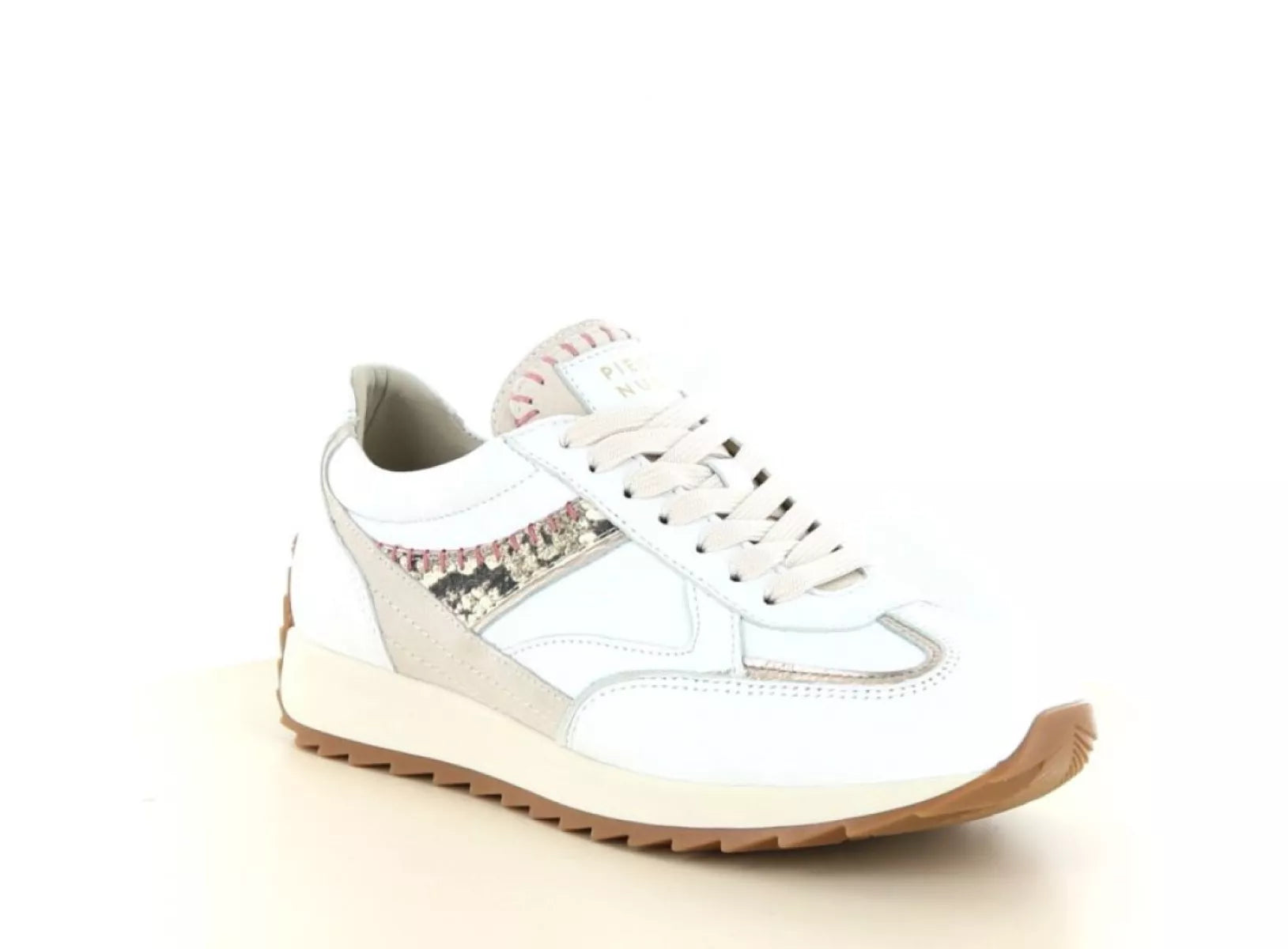 Der Piedi Nudi Harlem 02.09 Sneaker in Weiß mit Schlangenmuster vereint Stil, Komfort und Funktionalität perfekt. Dieser modische Damen-Sneaker ist aus geschmeidigem Premium-Leder gefertigt und mit einem luxuriösen Schlangenmuster an der Seite verziert. Dadurch erhält der Schuh einen eleganten und modernen Look, der sich mühelos sowohl zu legeren als auch zu formellen Outfits kombinieren lässt.