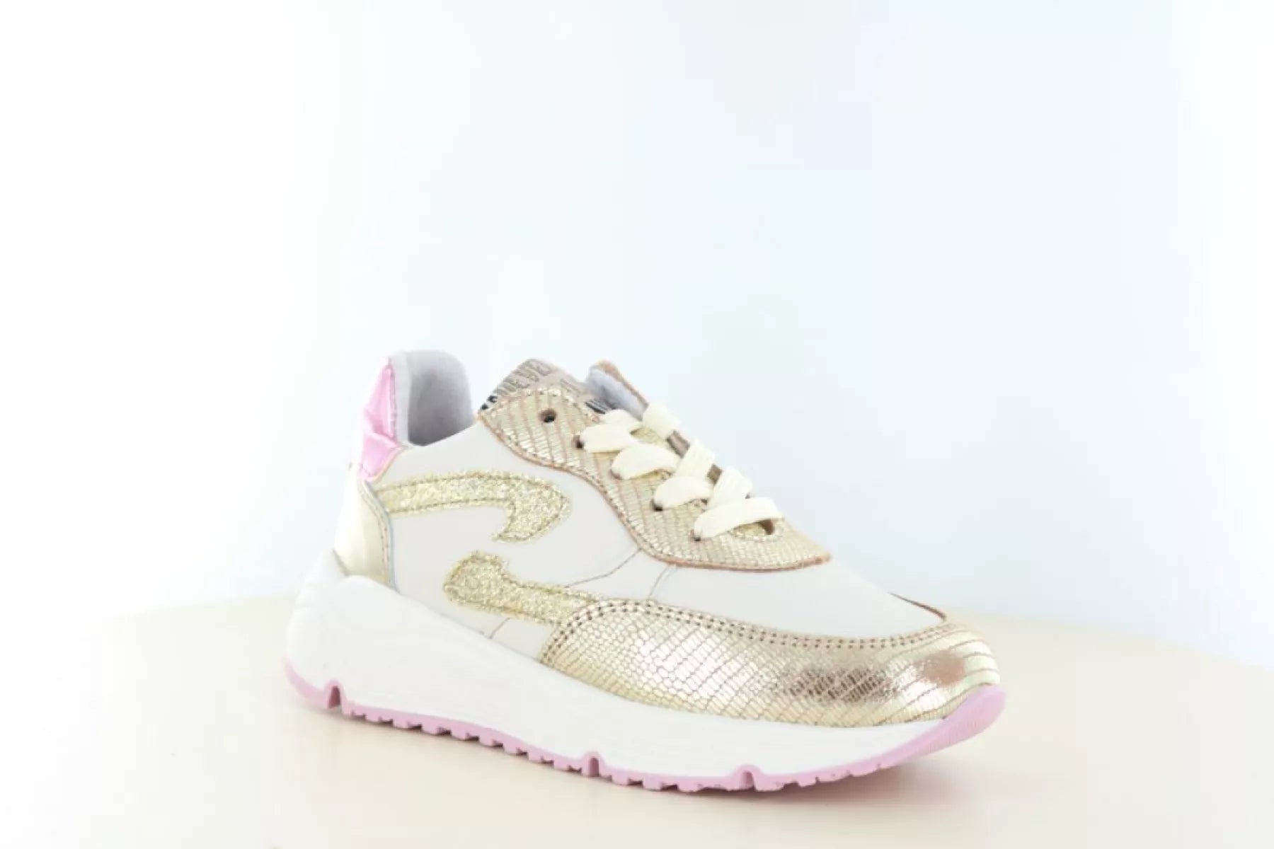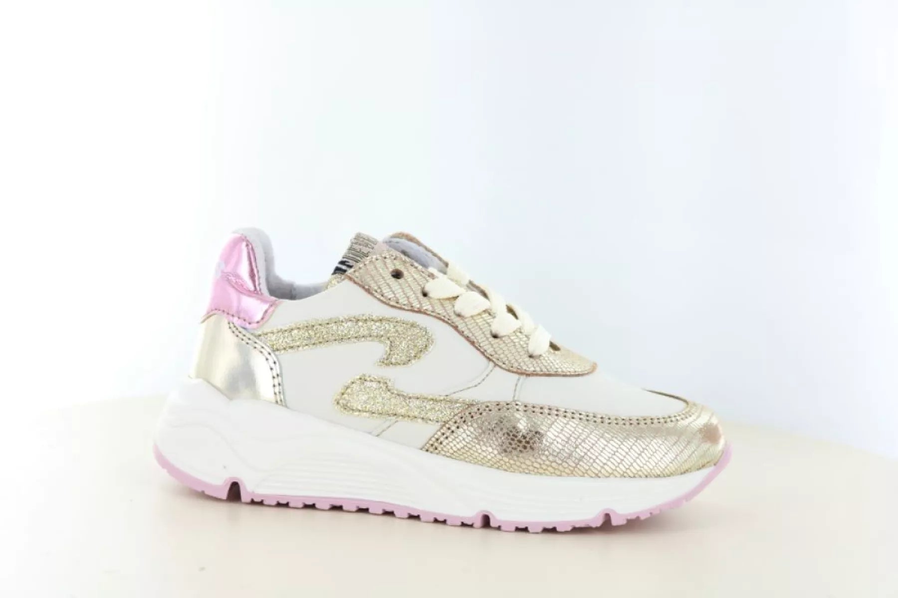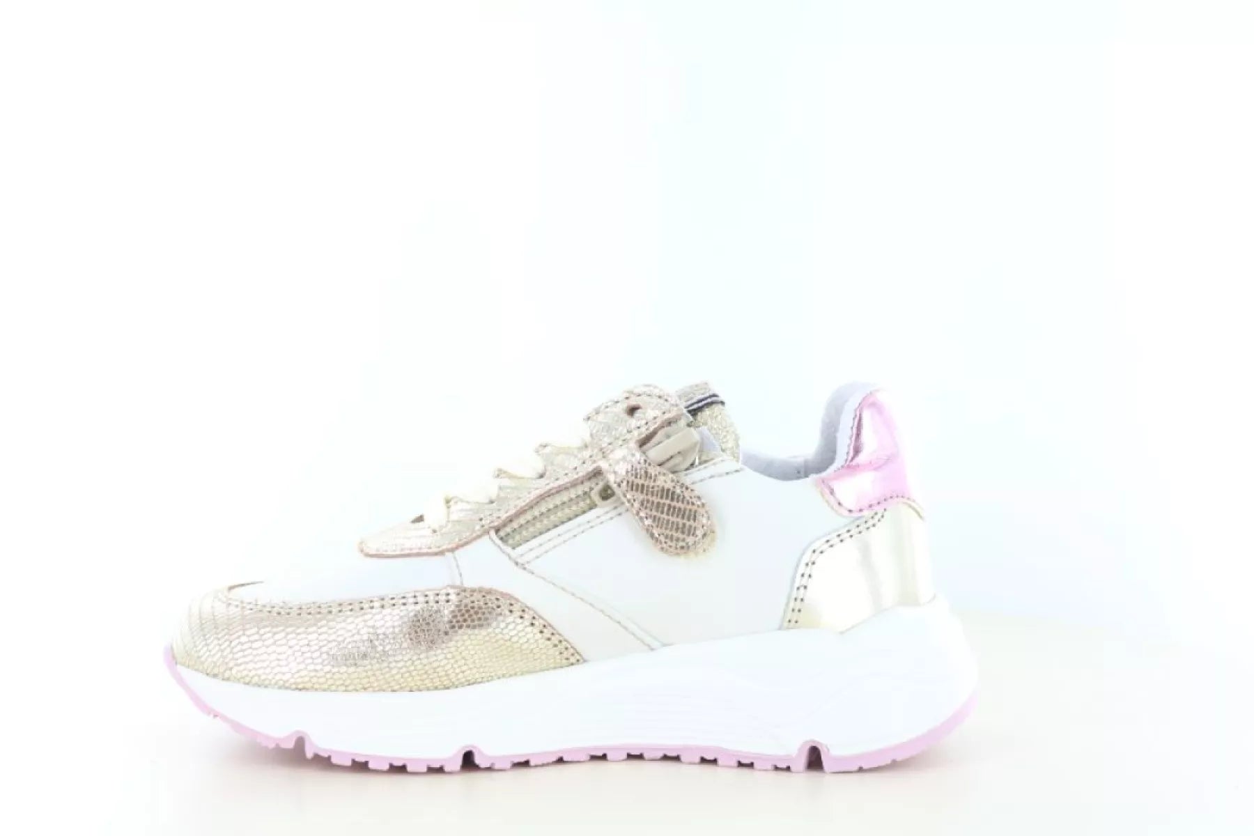 Der goldene Develab 41044 Mädchen-Sneaker ist ein echter Hingucker für junge Fashionistas. Dieser trendige Leder-Sneaker vereint einen sportlichen Look mit einem verspielten und stylischen Finish. Die glänzenden Golddetails, kombiniert mit zarten rosa Akzenten, verleihen dem Schuh einen fröhlichen und modischen Look, der perfekt zu jedem Outfit passt.