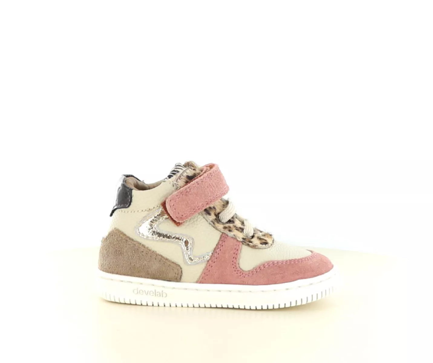 Die Farbe Old Pink Fantasy mit verspielten Details wie Metallic- und Animalprint-Akzenten macht diesen Sneaker zu einem echten Hingucker. Perfekt für lässige und ausgefallene Outfits. Wie von Develab gewohnt, garantiert der Schuh Qualität, Komfort und ein kindgerechtes Design.