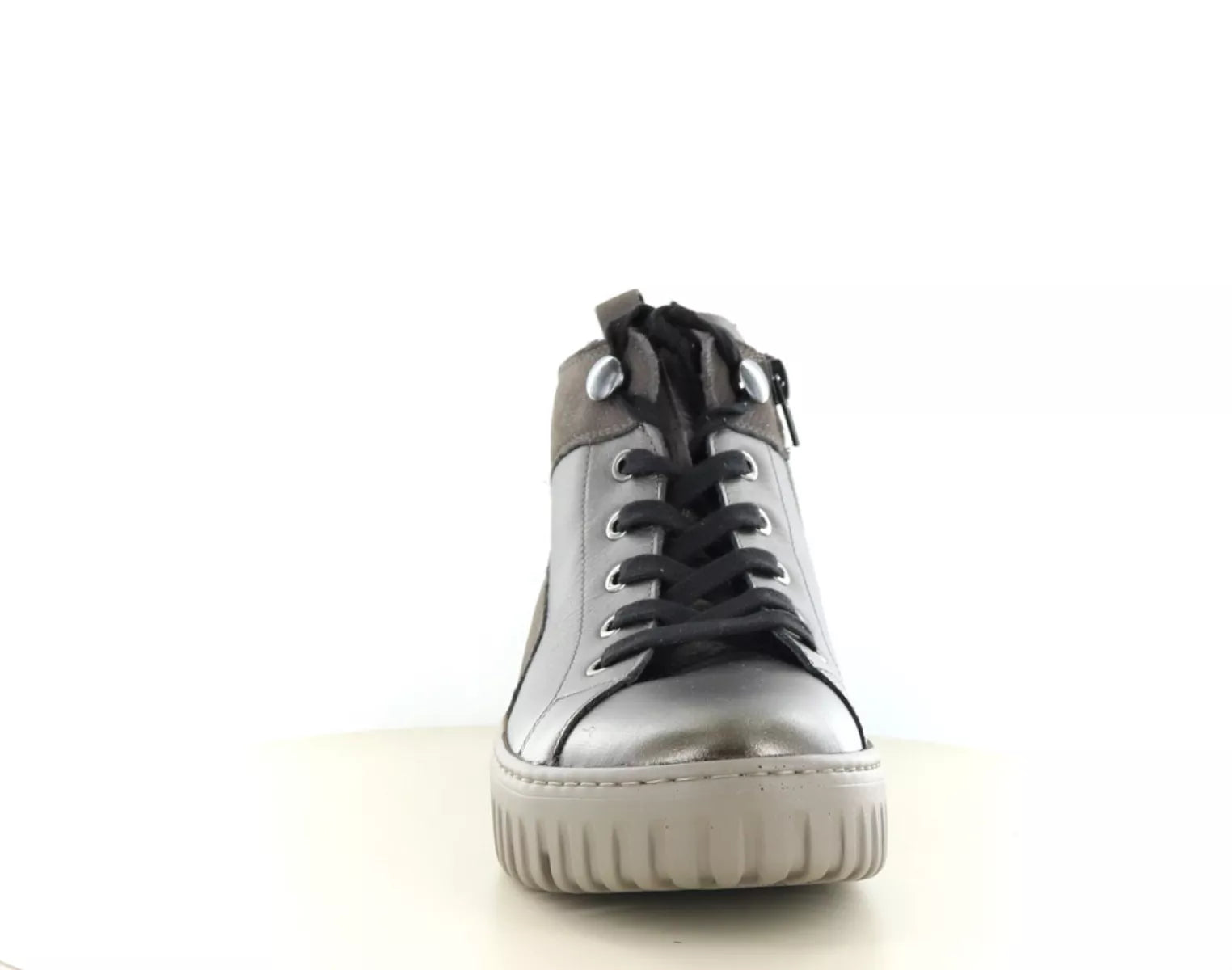 - Modischer Schnürboot in Metallic-Bronze mit dezentem Glanz und stylischen Details