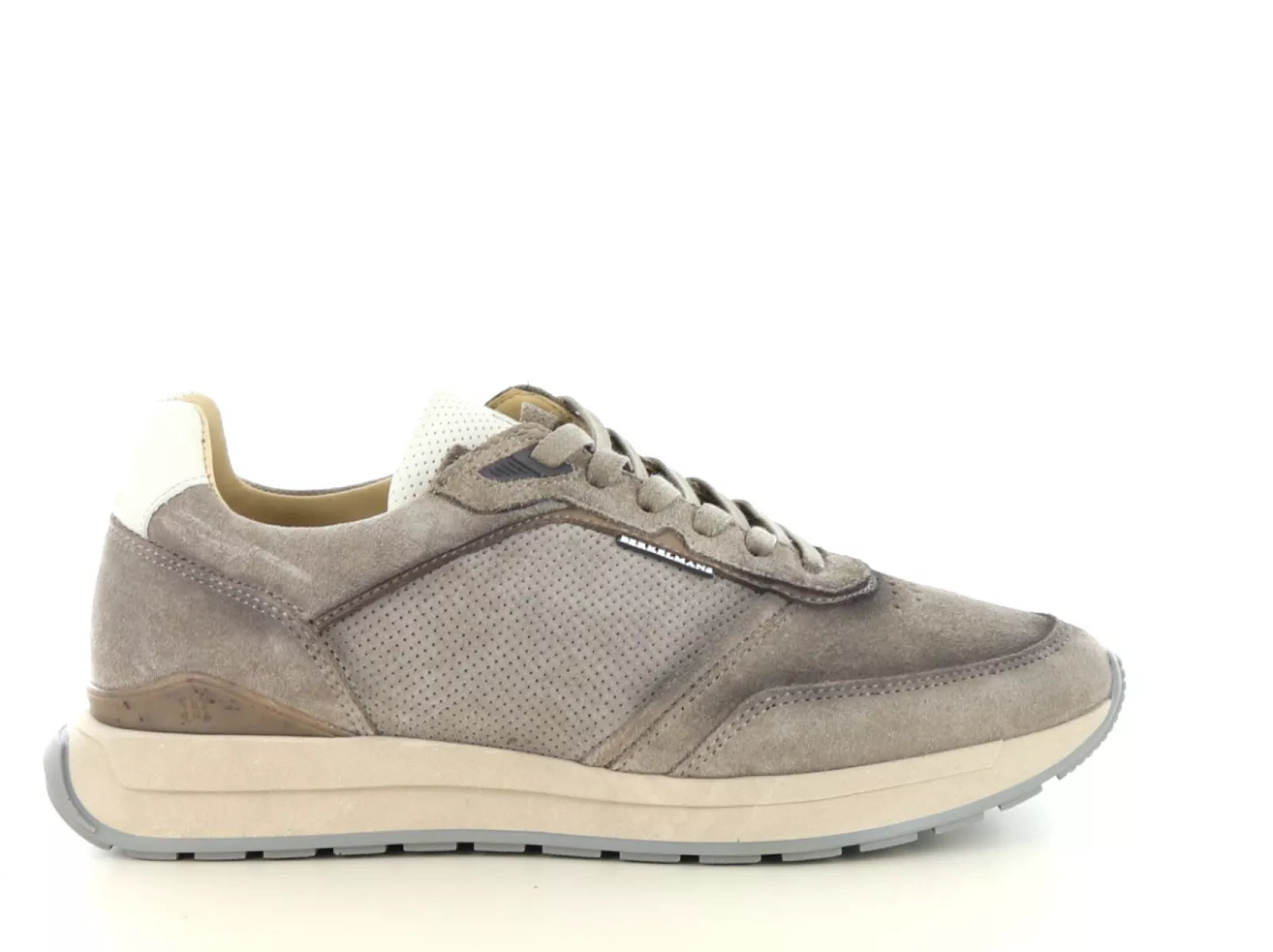 Der Berkelmans Hondo ist ein sportlicher Low-Top-Schnürschuh, der Klasse und Komfort vereint. Das Obermaterial aus taupefarbenem Wildleder verleiht diesem Schuh einen luxuriösen und modernen Look und lässt sich sowohl mit lässigen Jeans als auch mit eleganten Chinos kombinieren.