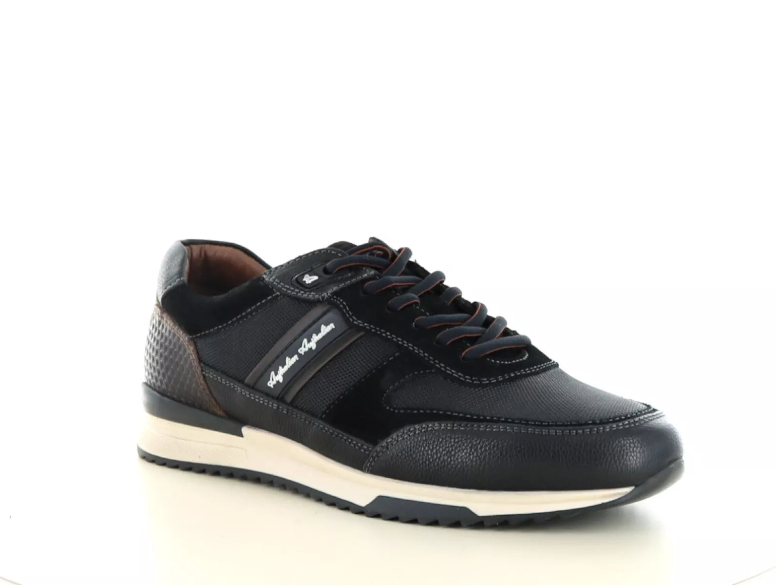 Der Australian Filmon ist ein moderner und sportlicher Sneaker für Männer, die Stil und Komfort kombinieren möchten. Dieser schwarze Schnürschuh aus Leder mit Cognac-Details strahlt Klasse aus und lässt sich mühelos sowohl mit lässigen als auch mit eleganten Outfits kombinieren.