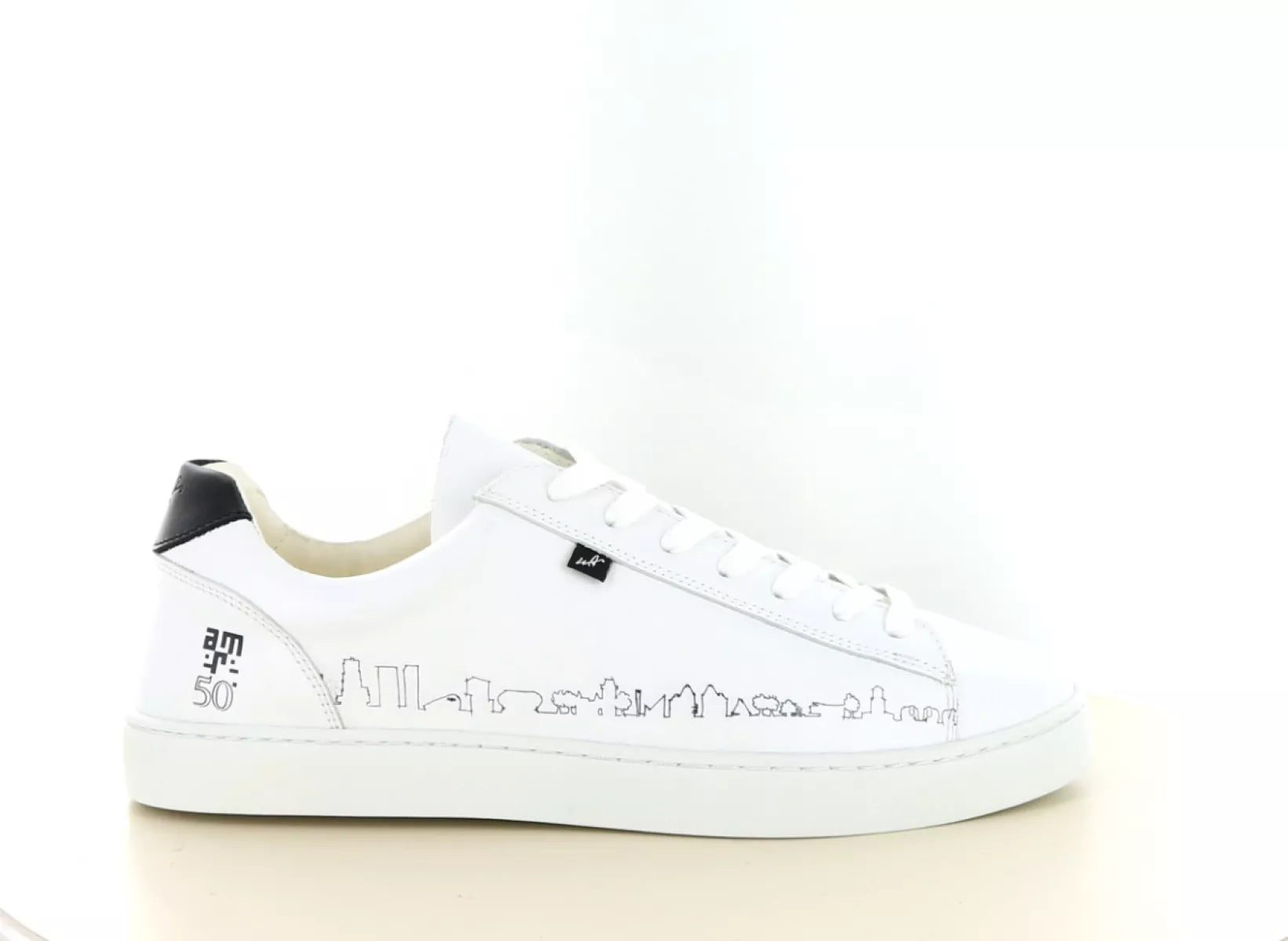 Der Herren-Sneaker FiftyLine ist ein exklusives Jubiläumsmodell, das speziell zum 50-jährigen Bestehen von Almere entwickelt wurde. Dieser elegante weiße Lederschuh besticht durch sein modernes Design und den raffinierten Almere-Skyline-Print , der ihm einen einzigartigen und unverwechselbaren Charakter verleiht.