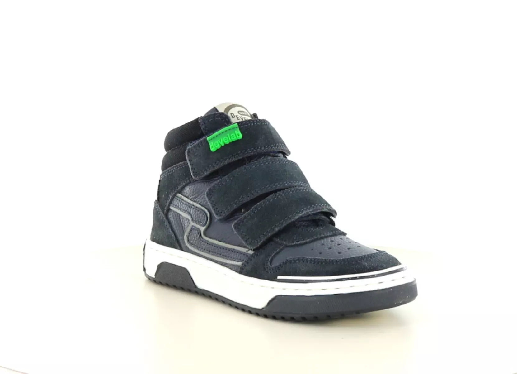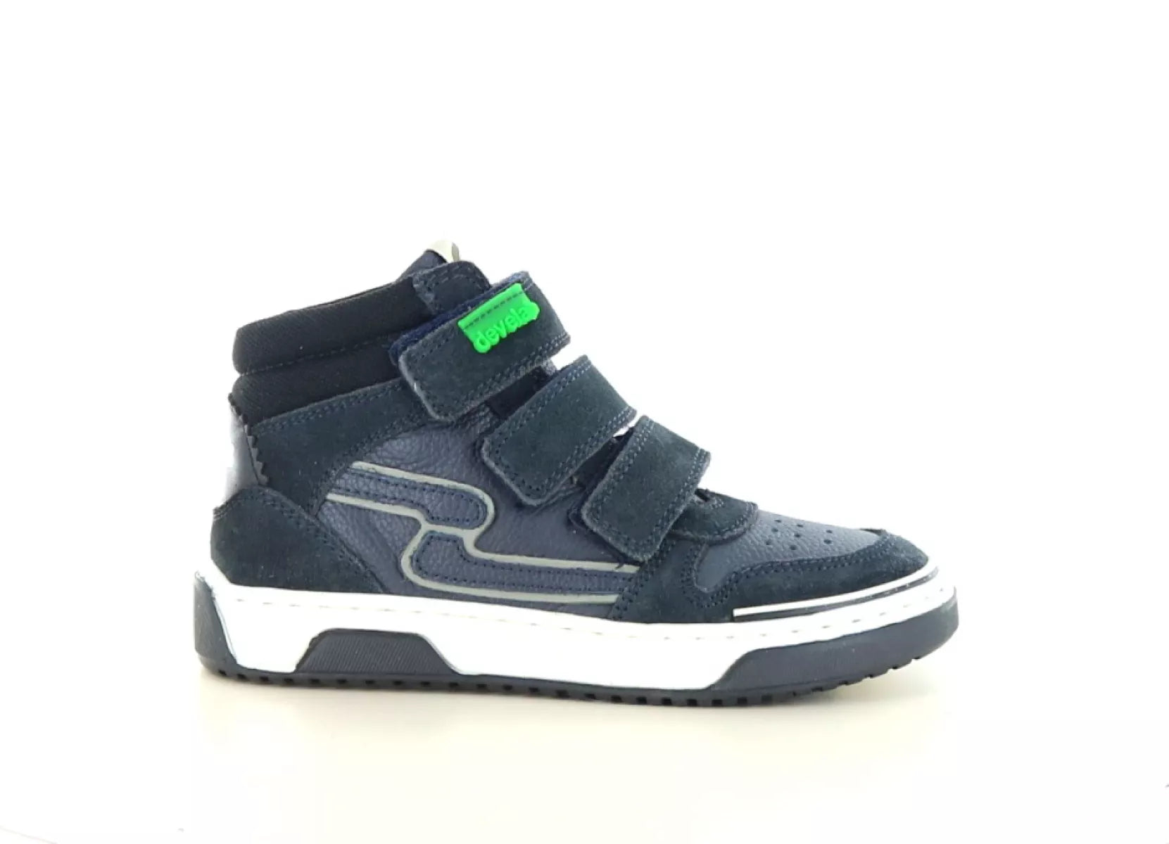 Durch die marineblaue Farbe mit verspielten Details lassen sich diese Sneaker leicht mit allen möglichen Outfits kombinieren. Wie immer bei Develab wurde dieses Modell mit Blick auf Qualität und kinderfreundlichen Komfort entwickelt.