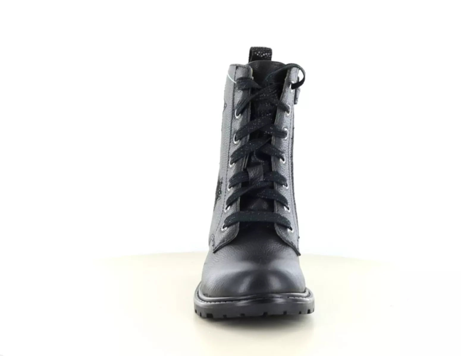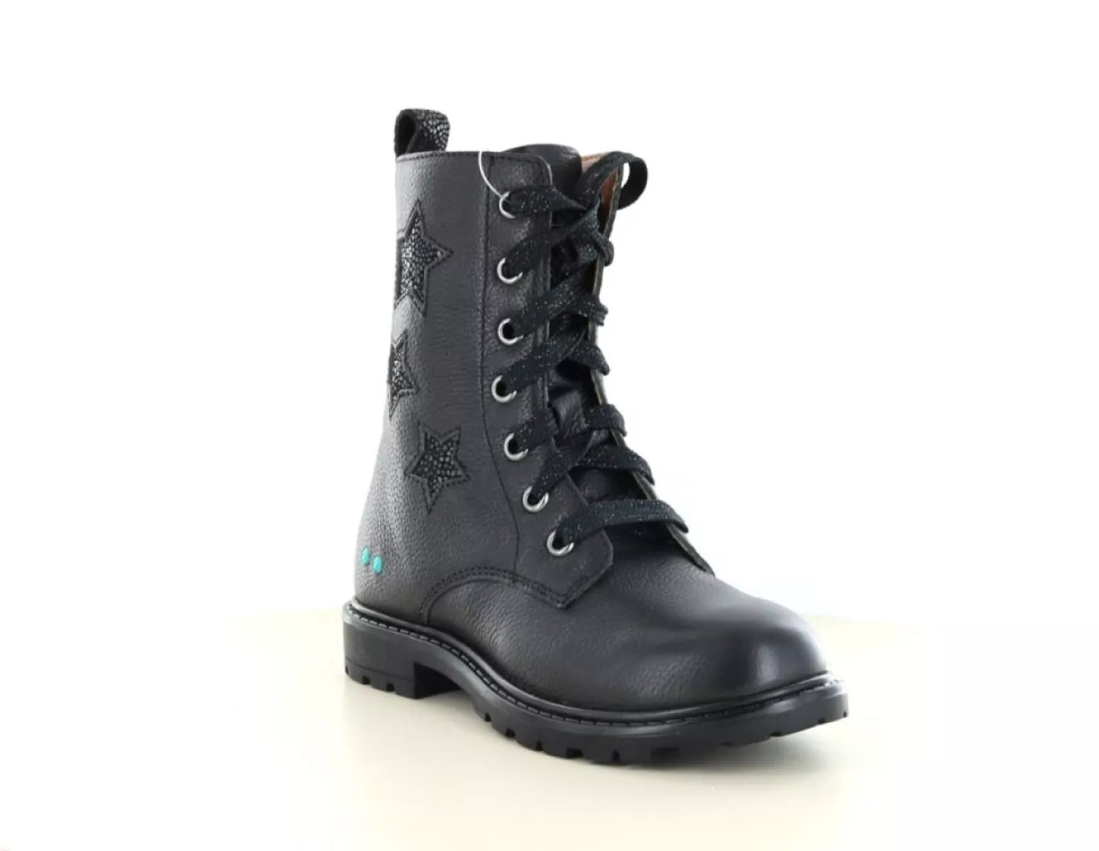 Der Bunnies JR Hailee Happy in klassischem Schwarz ist ein modischer Schnürstiefel für Mädchen, die cool und stylisch zugleich aussehen wollen. Das Obermaterial besteht aus hochwertigem Leder und ist mit verspielten Sternen an der Seite versehen, die dem Stiefel eine besondere Note verleihen.