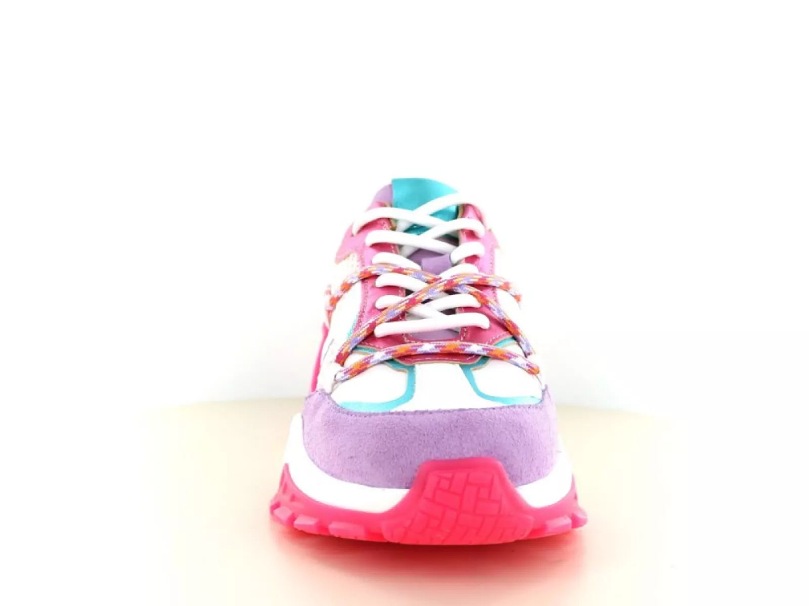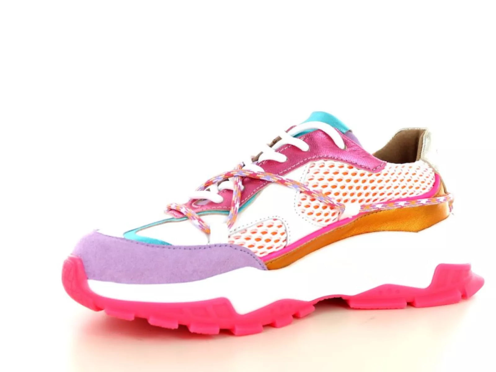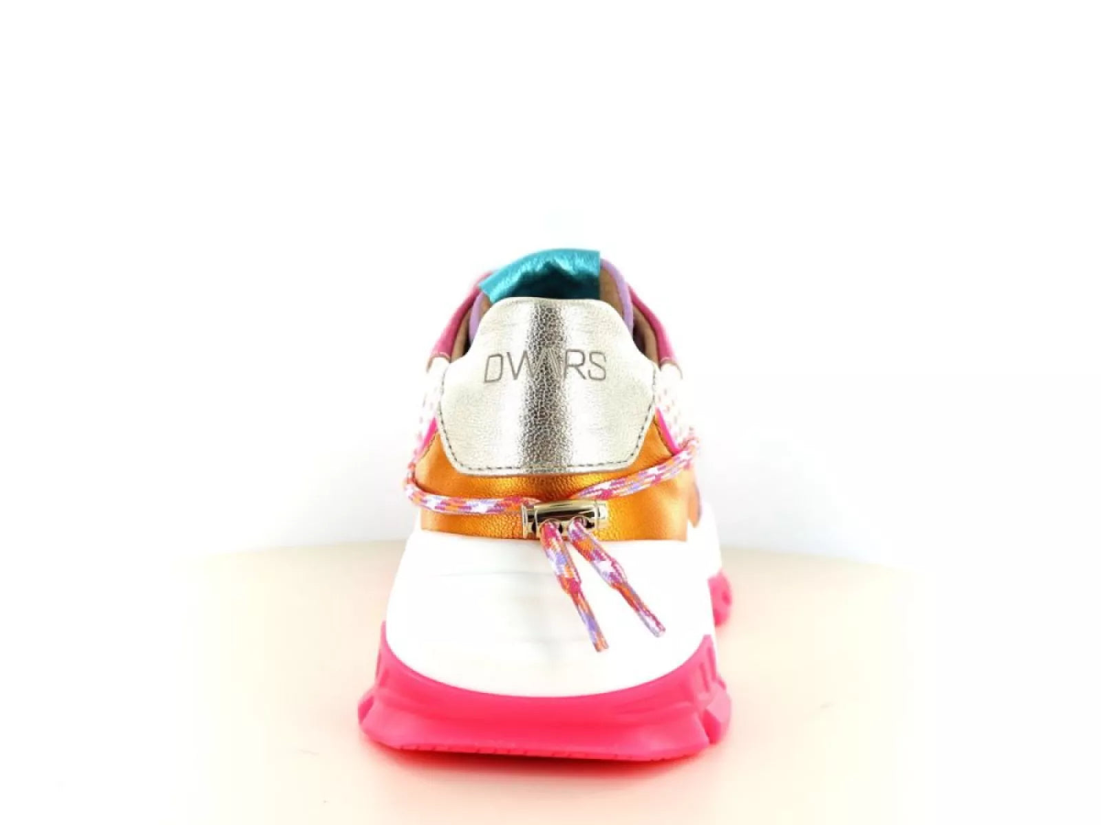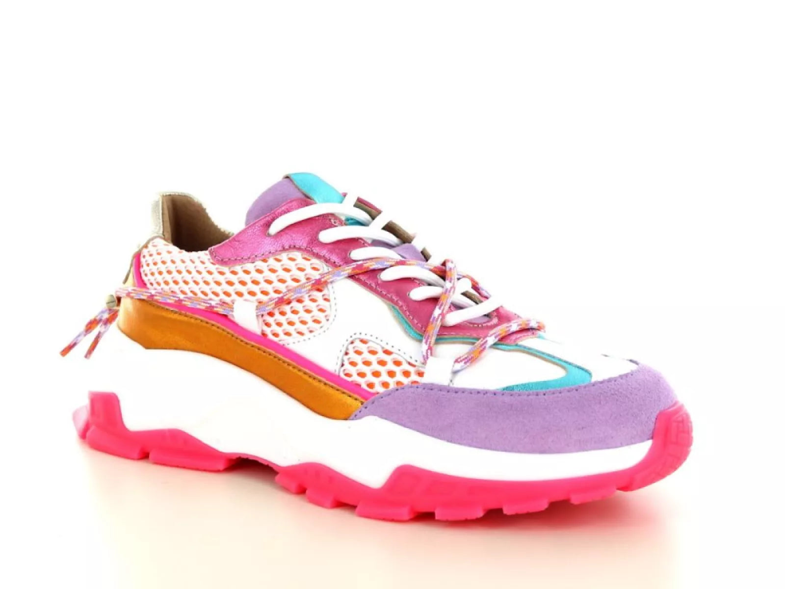 Der Bonney von DWRS Label ist ein wunderschöner Sneaker aus Leder für Damen. Dieser niedrige Sneaker hat ein austauschbares Fußbett und ist für Fußgewölbestützen geeignet. Dieser Schnürschuh ist in der Farbe Pink/Lila/Orange 5459 erhältlich. Der Verschluss erfolgt mit einer Schnürung.