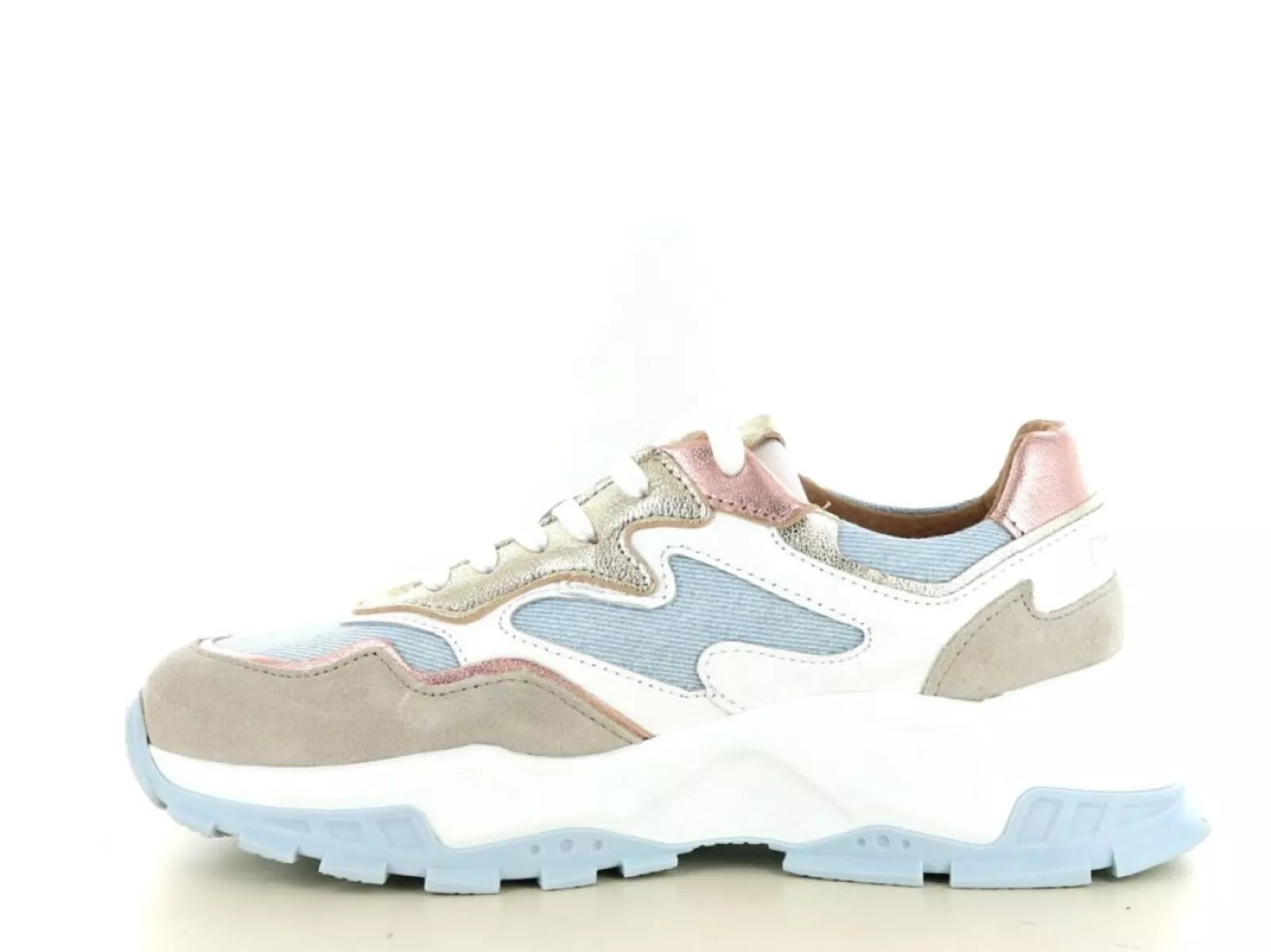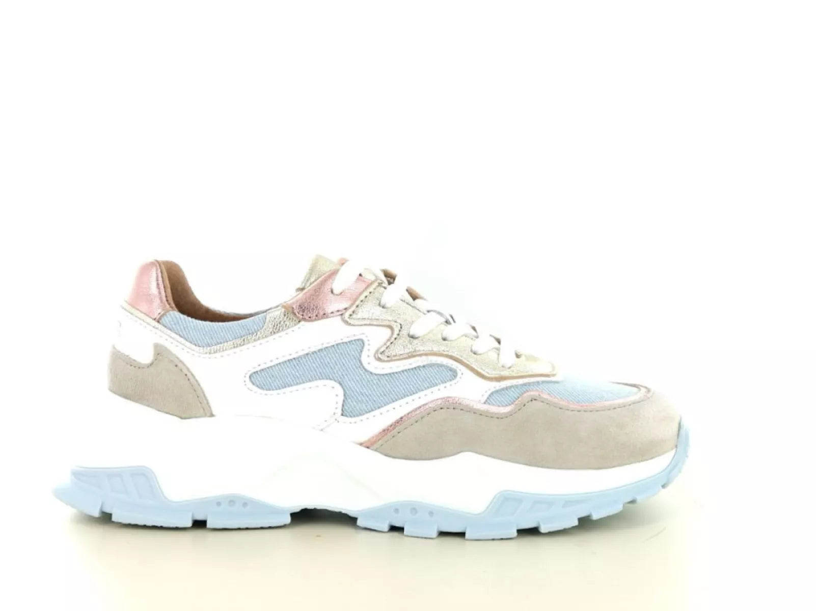 Der Chester Denim Sneaker von DWRS Label ist eine stilvolle Ergänzung für die Garderobe jeder modebewussten Frau. Die auffällige Farbkombination aus Pink und Jeansblau, ergänzt durch metallische Details, verleiht diesem Schuh einen verspielten und trendigen Look. Ideal für lässige Outfits und perfekt für den Alltag.
