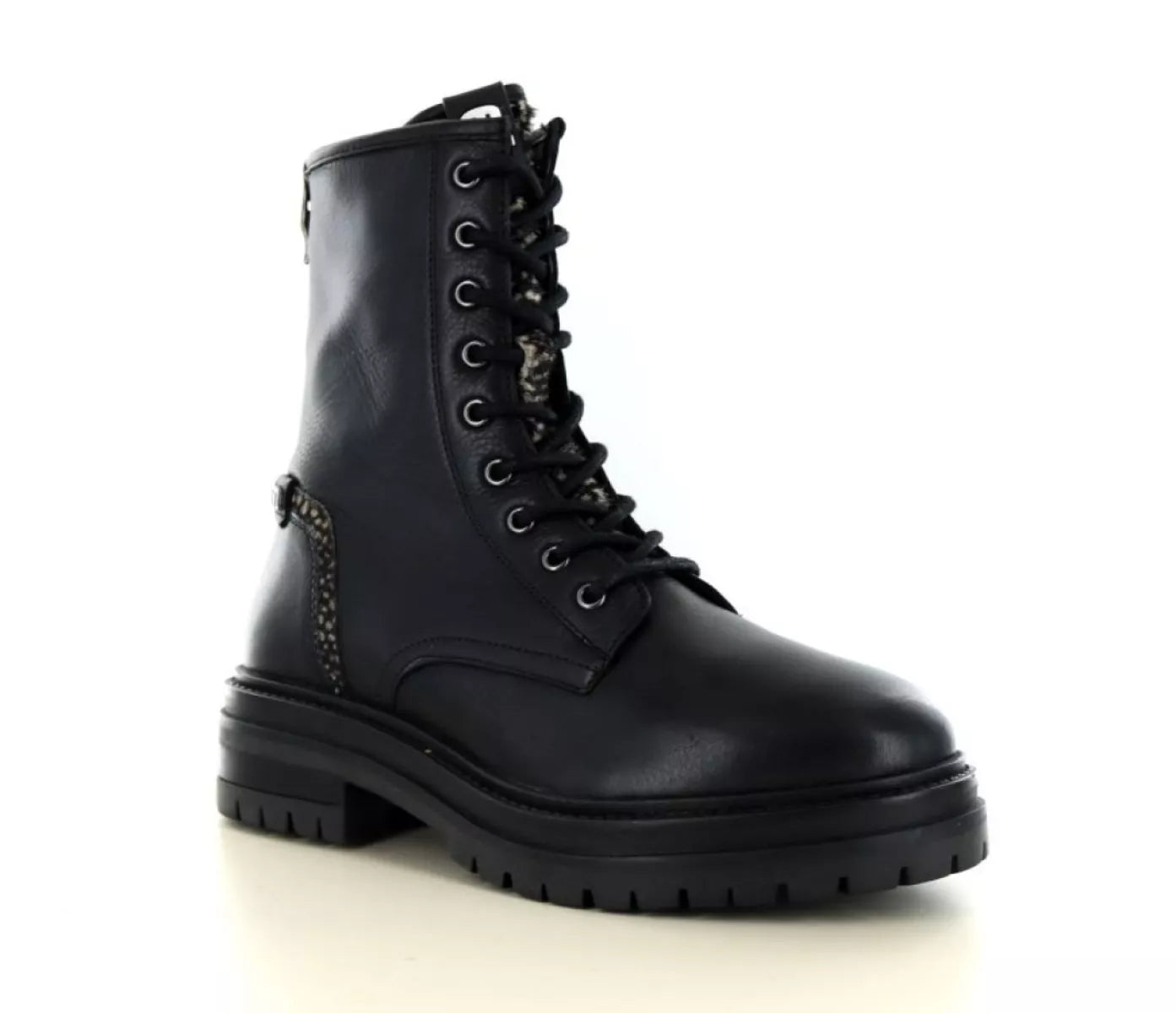 Der Bonnie von Maruti ist ein trendiger Bikerstiefel, den jede modebewusste Frau in ihrer Sammlung haben sollte. Dieser halbhohe Schnürschuh aus Leder bietet einen robusten Look kombiniert mit maximalem Komfort – ideal für den Alltag und verleiht Ihrem Outfit eine coole Note.
