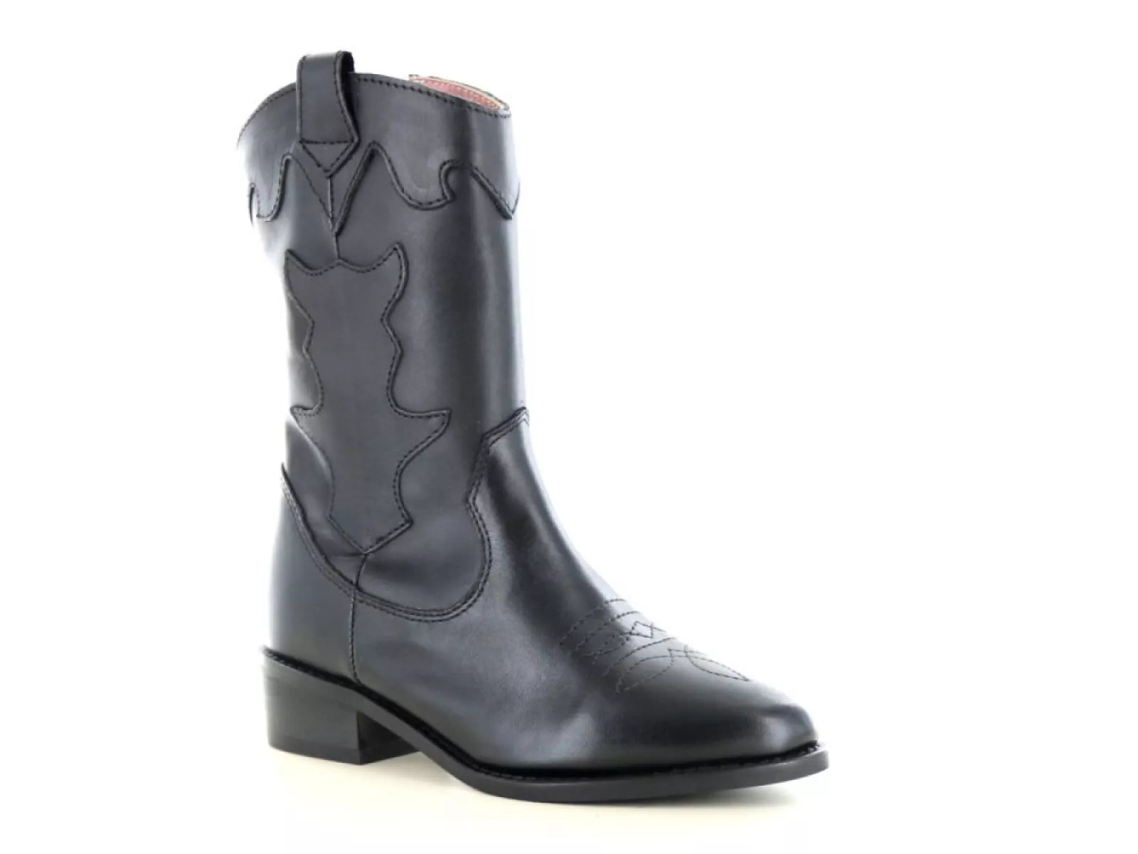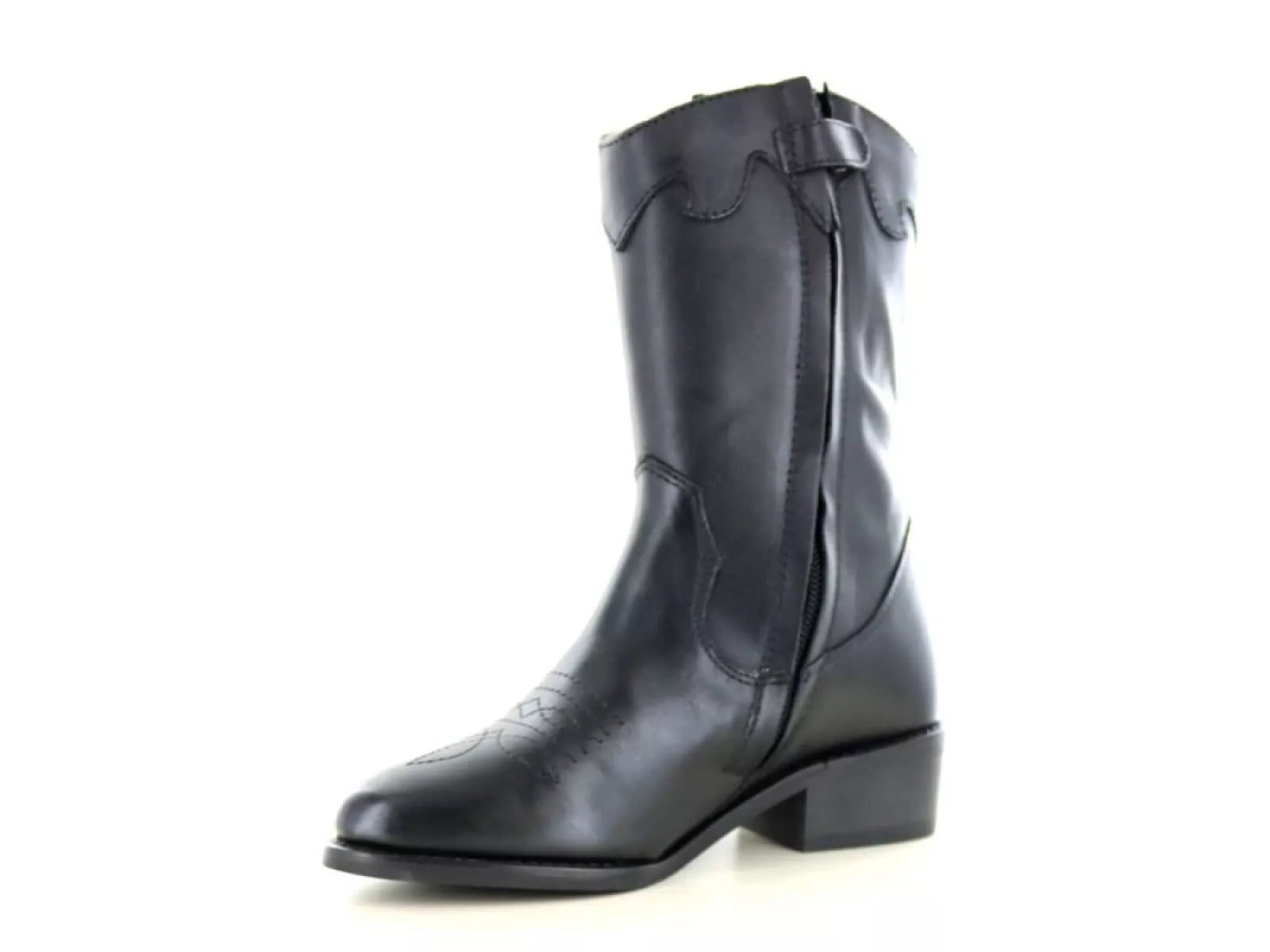 Verleihen Sie Ihrer Tochter mit dem PS Poelman Nolia K23 Stiefeletten-Modell Stil und Komfort. Dieser halbhohe Westernstiefel aus zeitlosem schwarzem Leder ist für Mädchen gedacht, die Wert auf Eleganz und Funktionalität legen.