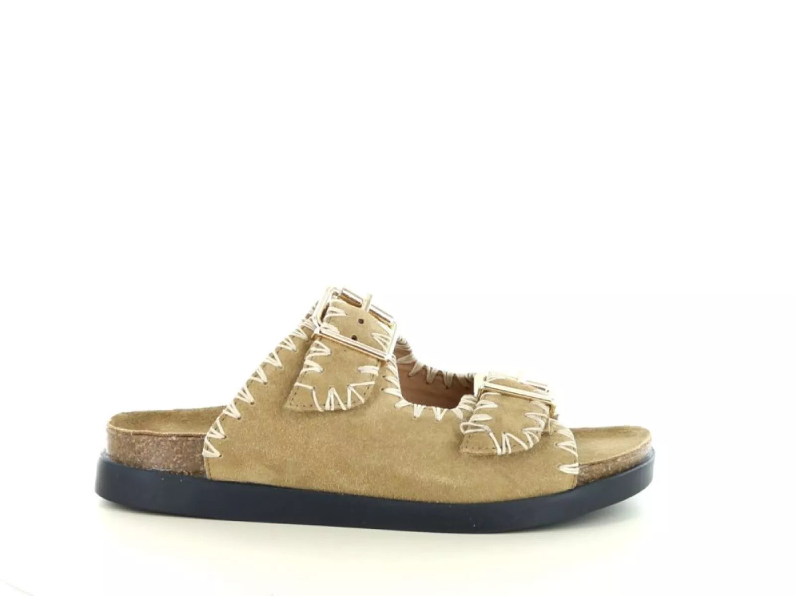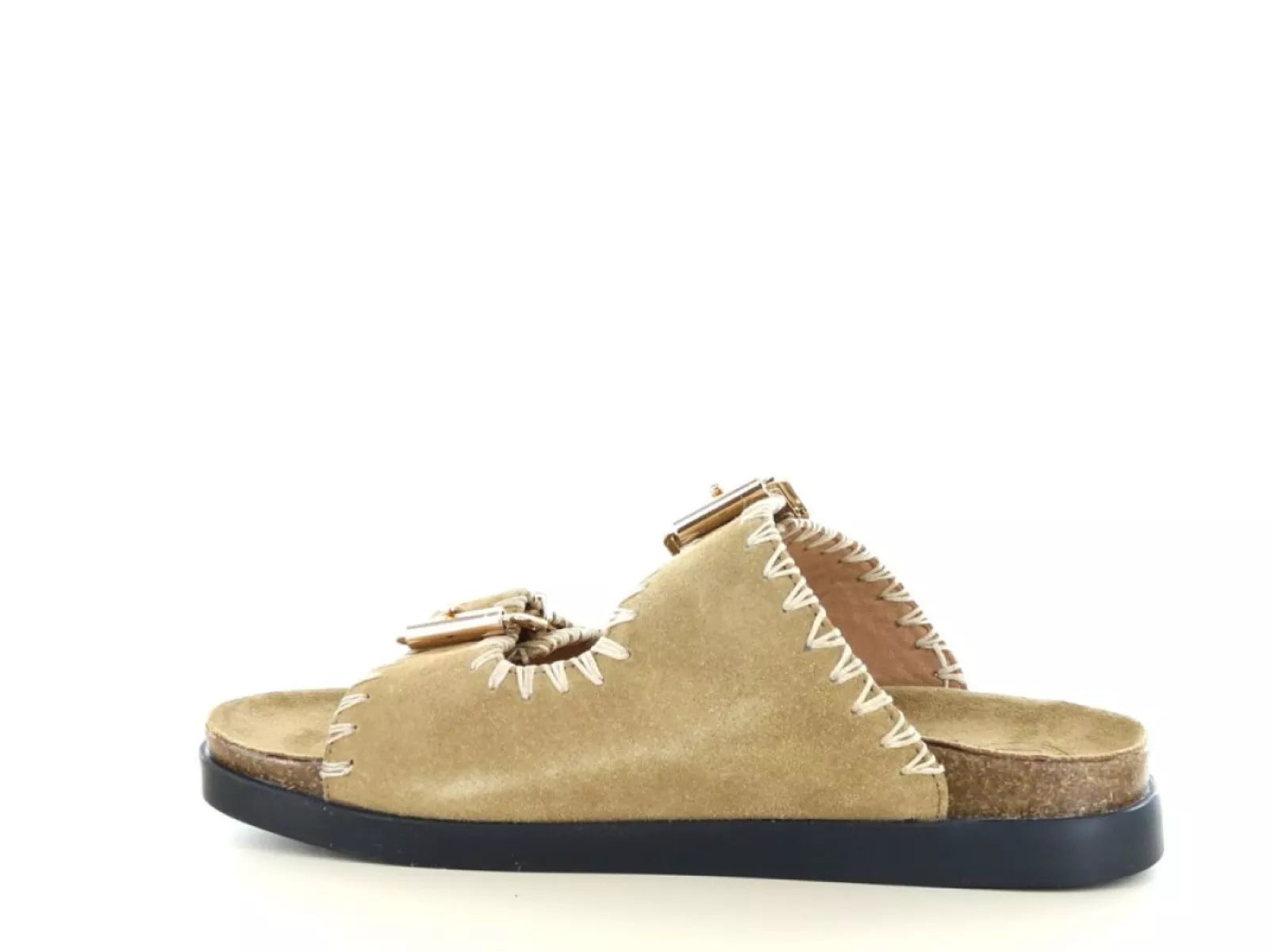 Starten Sie stilvoll in den Sommer mit dem Saran Slipper von Posh by PS Poelman . Dieser trendige Damen-Slipper verbindet Komfort mit einem unverwechselbaren Design. Das Modell ist aus synthetischem Wildleder in der Farbe Cappuccino gefertigt und mit auffälligen weißen Ziernähten versehen, die für einen verspielten und unkonventionellen Look sorgen.