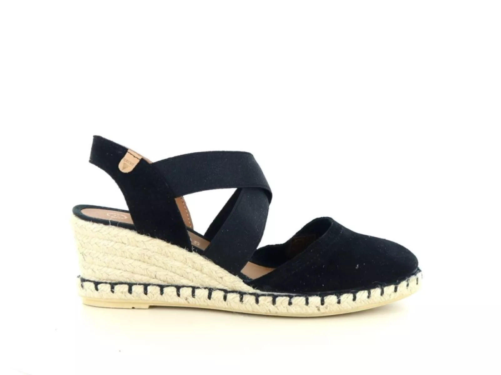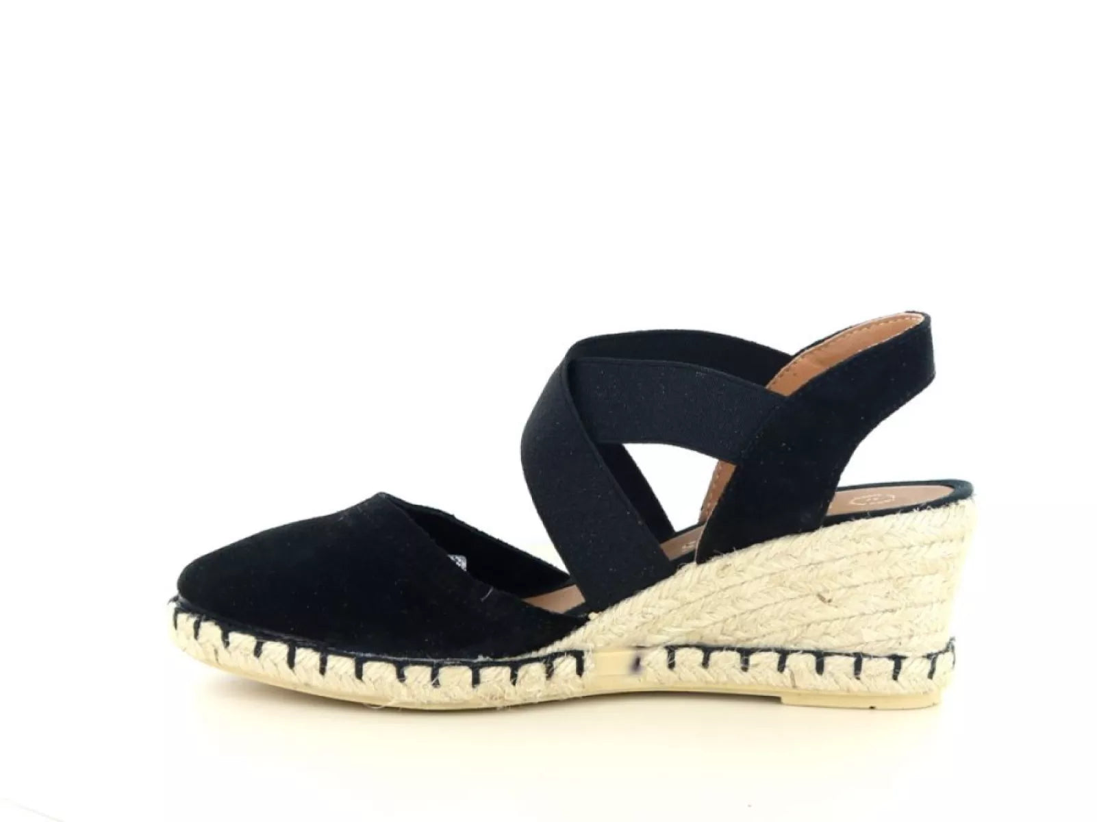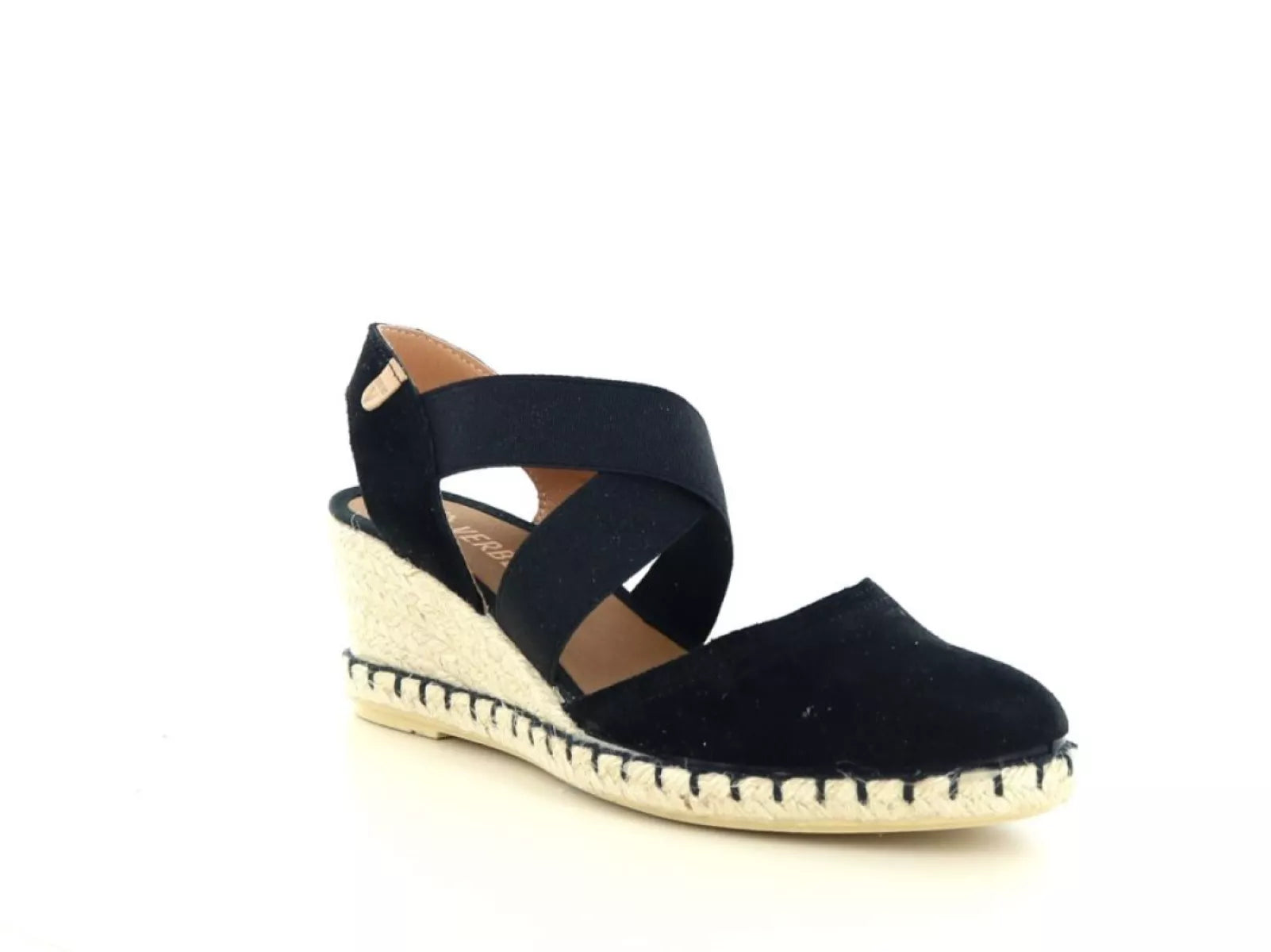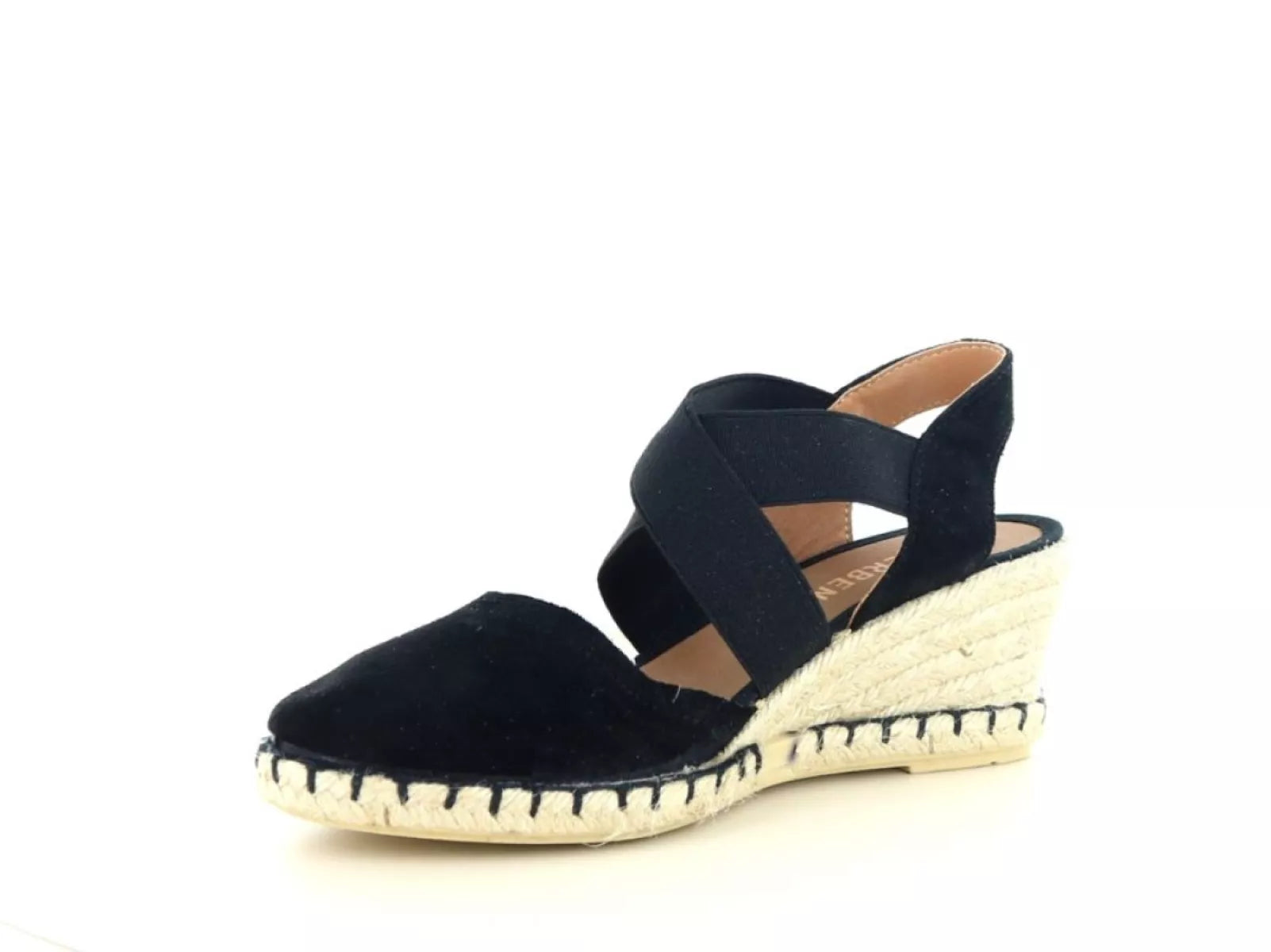 Die Verbenas Mila Keil-Espadrille verbindet mühelos traditionelles spanisches Flair mit moderner Eleganz. Aus hochwertigem Wildleder in der zeitlosen Farbe Negro (Schwarz) gefertigt, verleiht dieser Schuh jedem Sommeroutfit eine raffinierte Note. Die elastischen Riemen sorgen für einen sicheren und bequemen Sitz, während das Lederfußbett langanhaltenden Tragekomfort bietet. Mit einem ca. 6 cm hohen Keilabsatz bietet diese Espadrille extra Länge, ohne an Stabilität einzubüßen. Ideal für legere Ausflüge und formelle Anlässe.