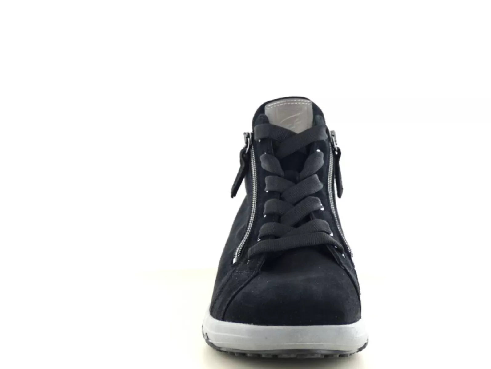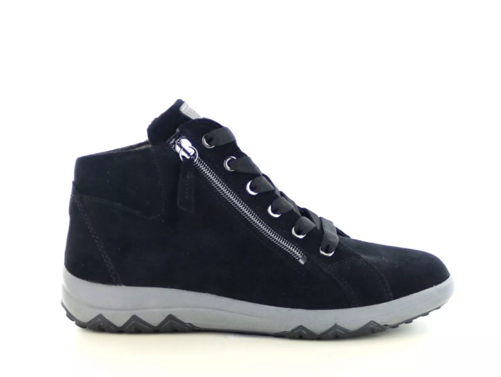 Der Schuh ist in der Weite H gefertigt und somit ideal für Damen mit breiteren Füßen. Die Kombination aus Schnürung und Reißverschluss ermöglicht ein einfaches Anziehen, ohne die Passform zu beeinträchtigen. Der Schuh passt sich dem Fuß optimal an und bietet festen Halt beim Gehen.