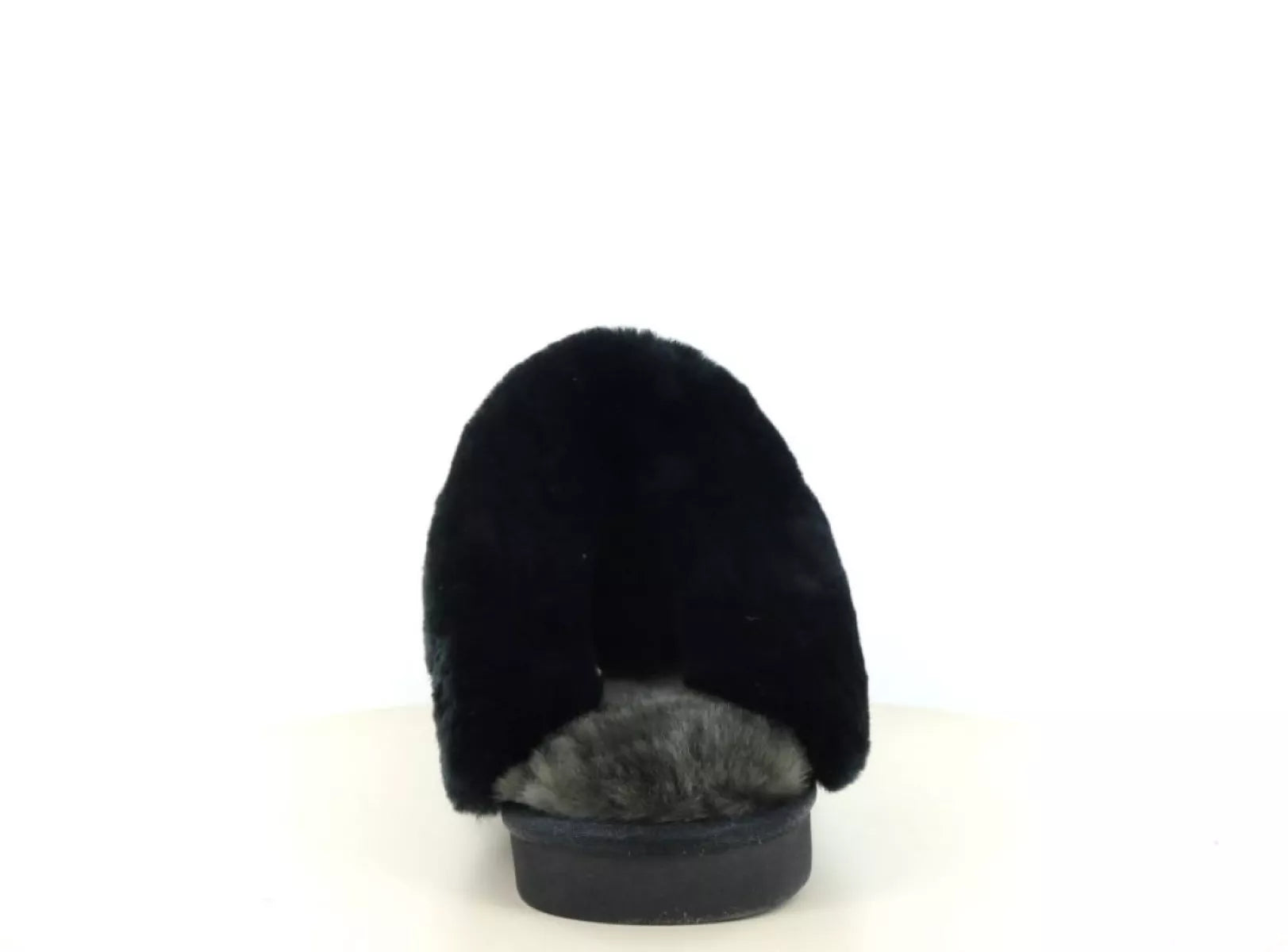 Warmbat Flurry Woman – Schwarzer Wildleder-Slipper mit Schaffellfutter
