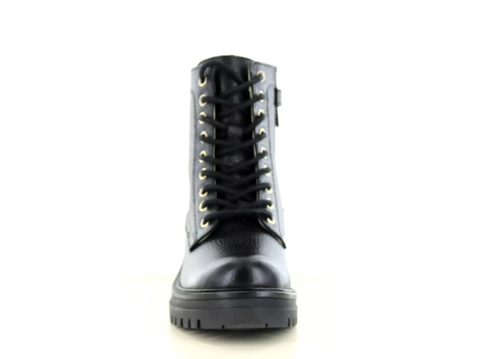 4. Zeitloses Design: Das schwarze Leder und das mittelhohe Design machen diesen Schnürstiefel vielseitig und passend für verschiedene Outfits, von lässig bis etwas formeller.