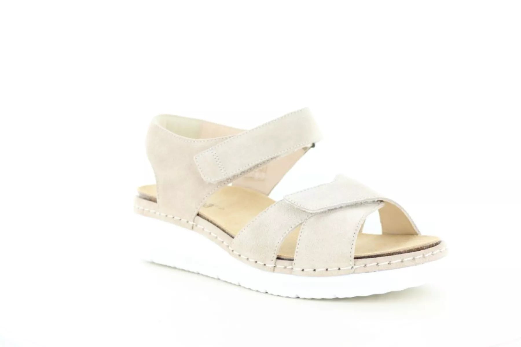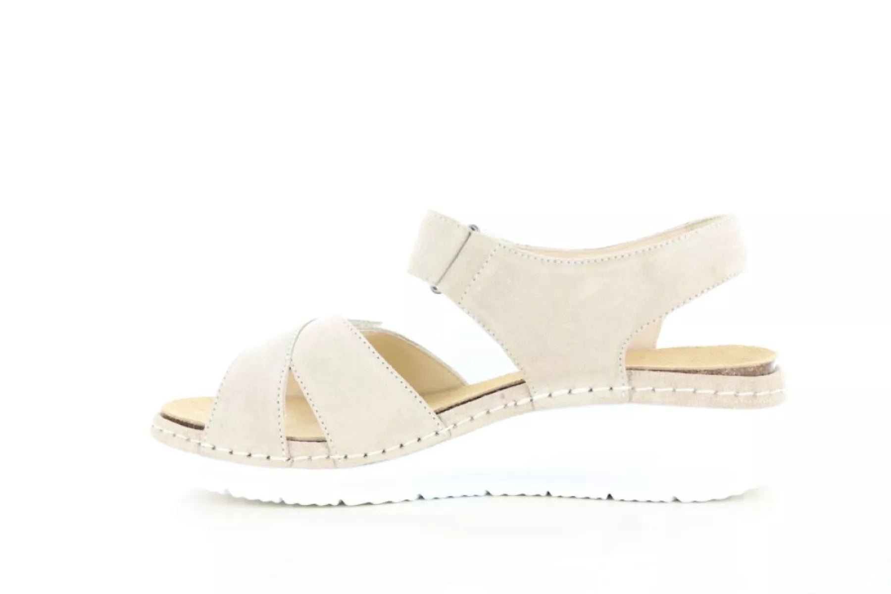 Das Obermaterial dieser Durea-Sandalen besteht aus weichem Wildleder in einem eleganten Taupe-Ton (2067) . Dieser neutrale Farbton harmoniert mühelos mit nahezu jedem Sommeroutfit, vom luftigen Kleid über lässige Hosen bis hin zum Rock.