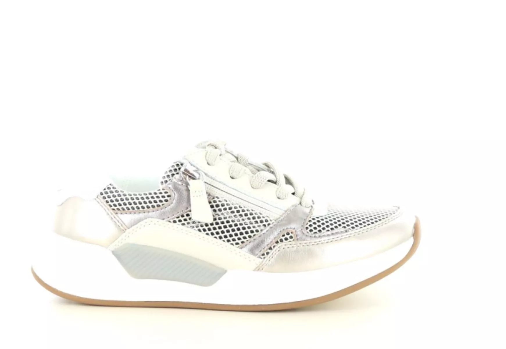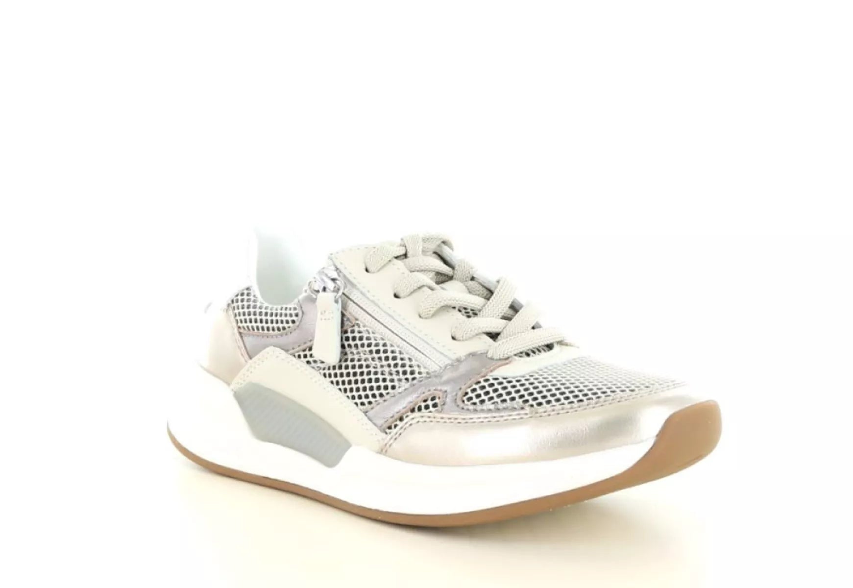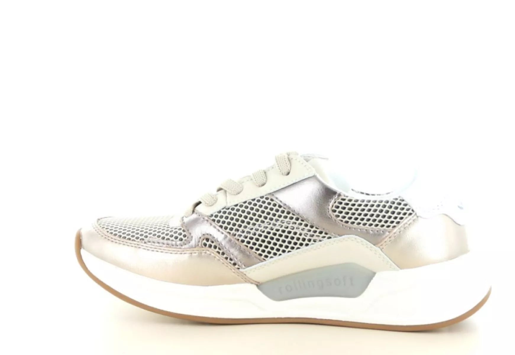 Der Gabor Rolling Soft 86.958 in Beige/Champagner (89) ist ein stylischer Damen-Sneaker, der Komfort und Eleganz perfekt vereint. Dank der Kombination aus hochwertigem Leder und atmungsaktivem Mesh-Gewebe fühlt sich dieser Sneaker leicht und flexibel an, während die dezenten Metallic-Details für einen modernen, femininen Look sorgen.
