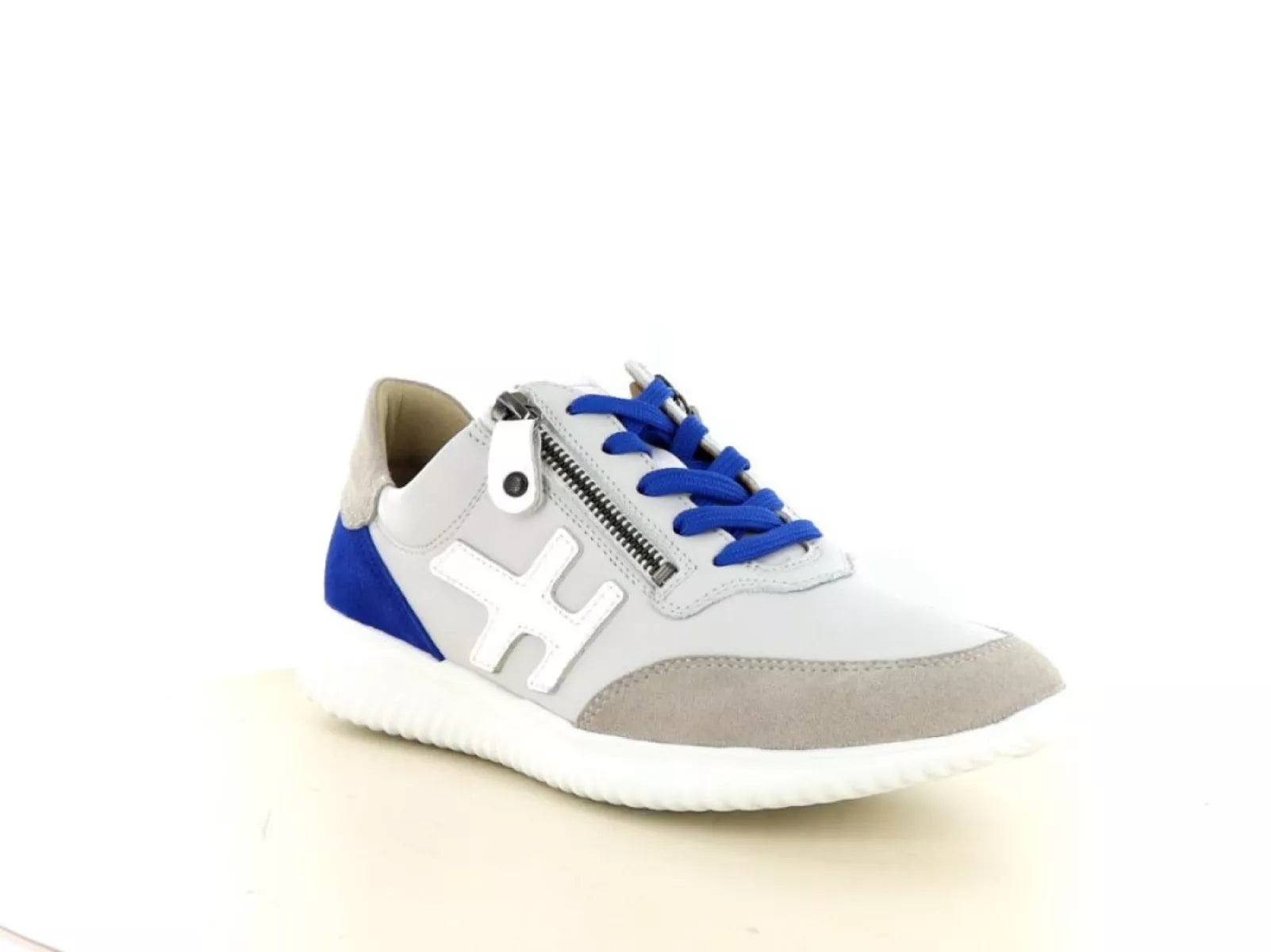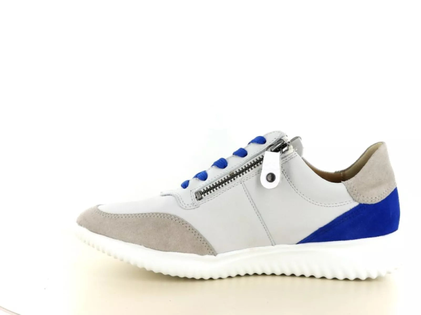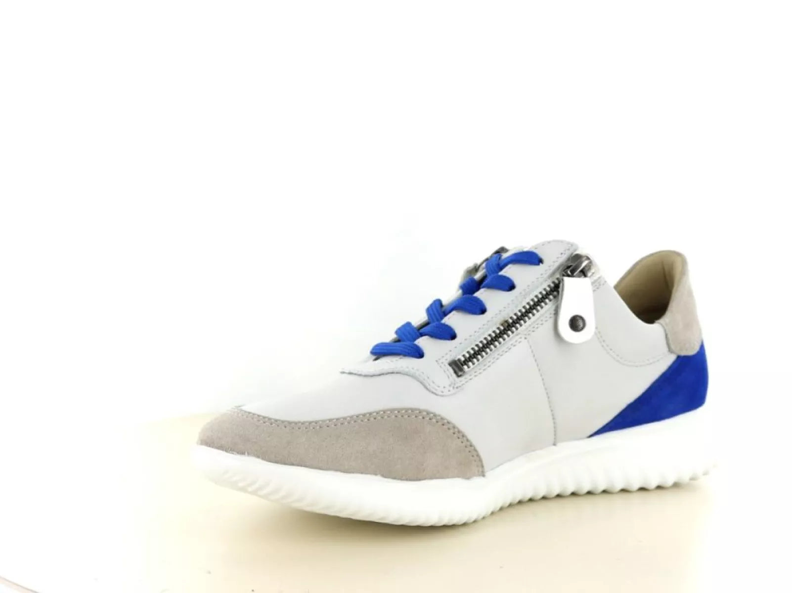 Der Hartjes 162.1142 Breeze Schuh ist ein eleganter und bequemer Schnürschuh für Damen aus einem hochwertigen Leder-Wildleder-Mix in stilvoller weiß-blauer Farbkombination. Die Kombination aus Schnürung und Doppelreißverschluss sorgt für einen einfachen Einstieg und eine perfekte Passform.