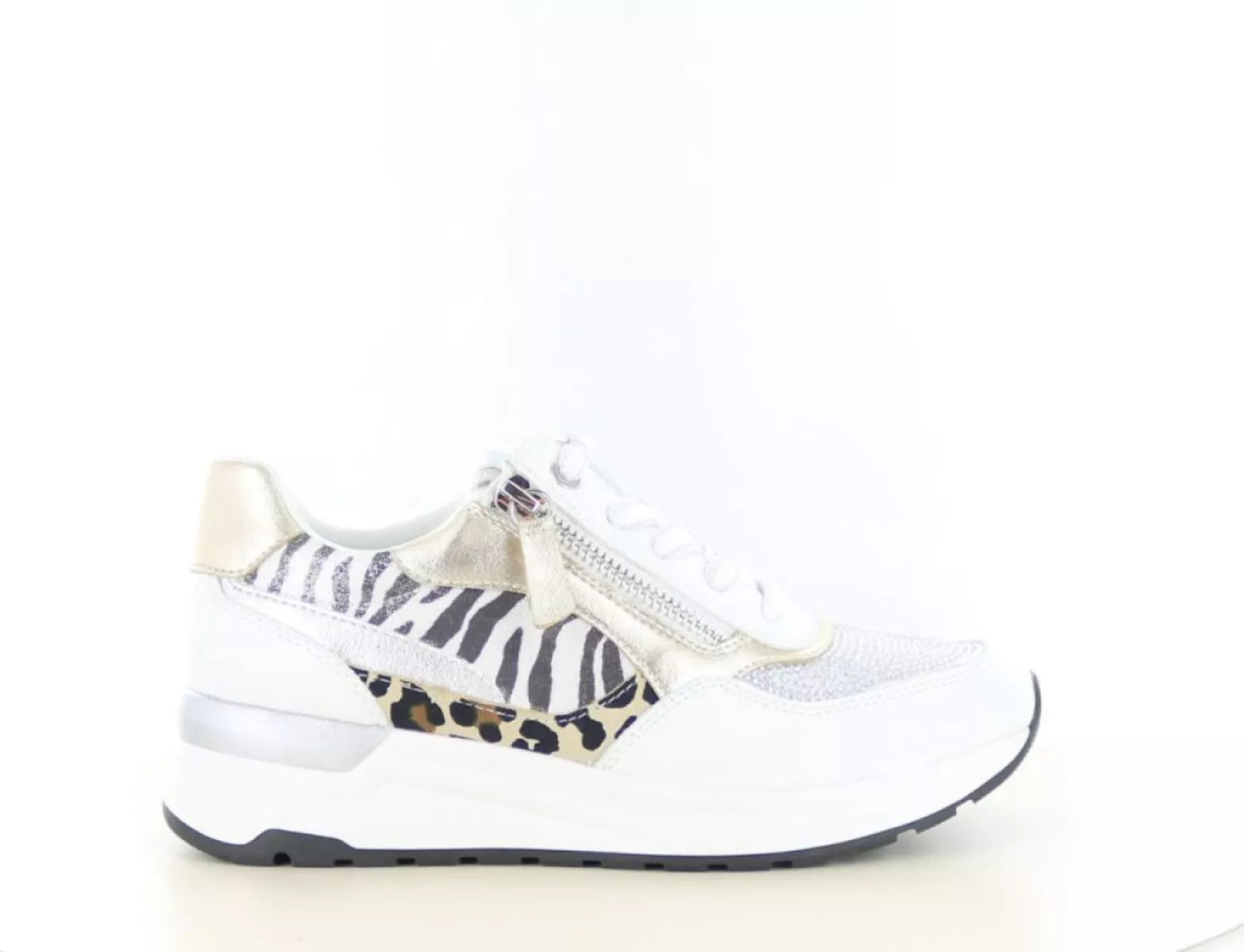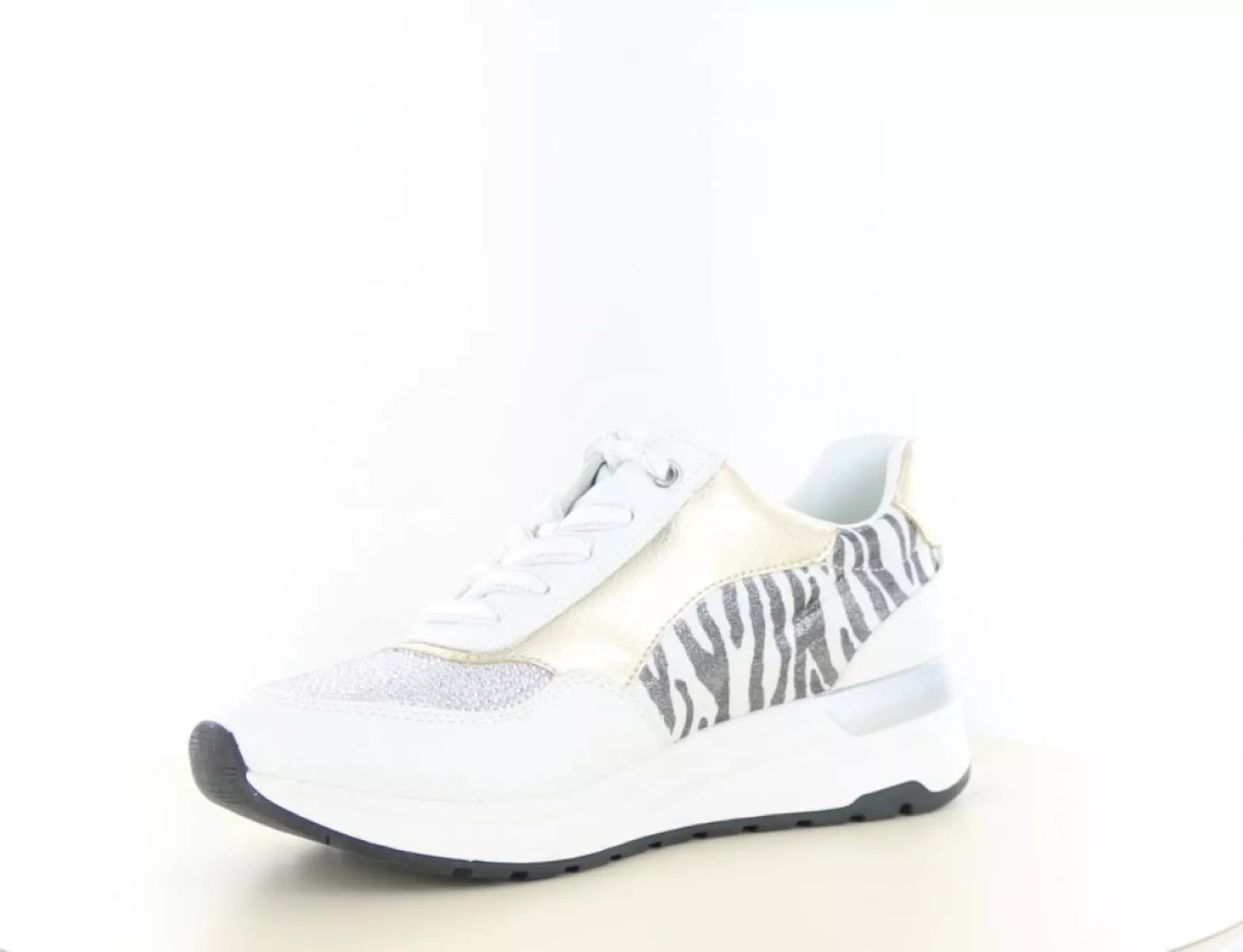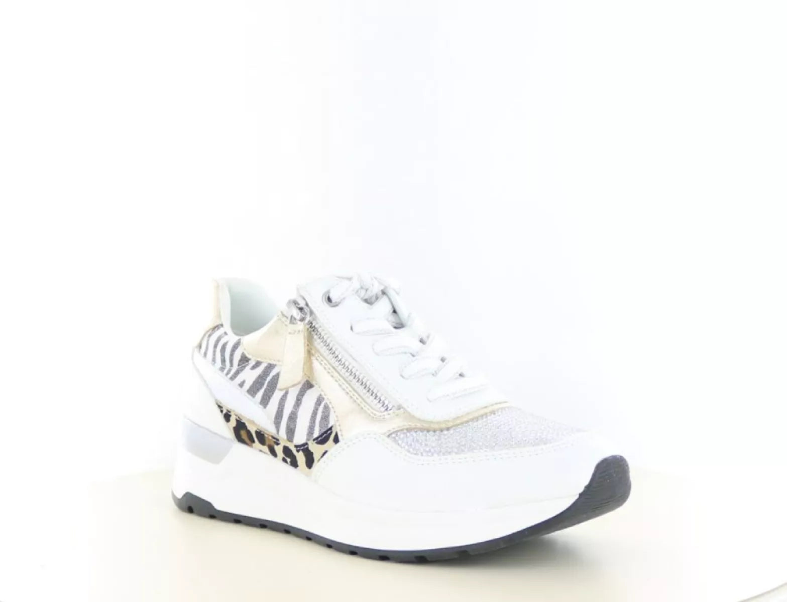Setzen Sie ein Statement mit dem markanten Marco Tozzi Sneaker 2/23742-44 in Weiß – eine perfekte Kombination aus Komfort, Stil und Flair. Der Damen-Sneaker ist dank der verspielten Kombination aus Zebra- und Leopardenmuster , metallischen Akzenten und einem strahlend weißen Grundton ein echter Hingucker. Ideal für alle, die einen modischen Look mit markantem Touch lieben.