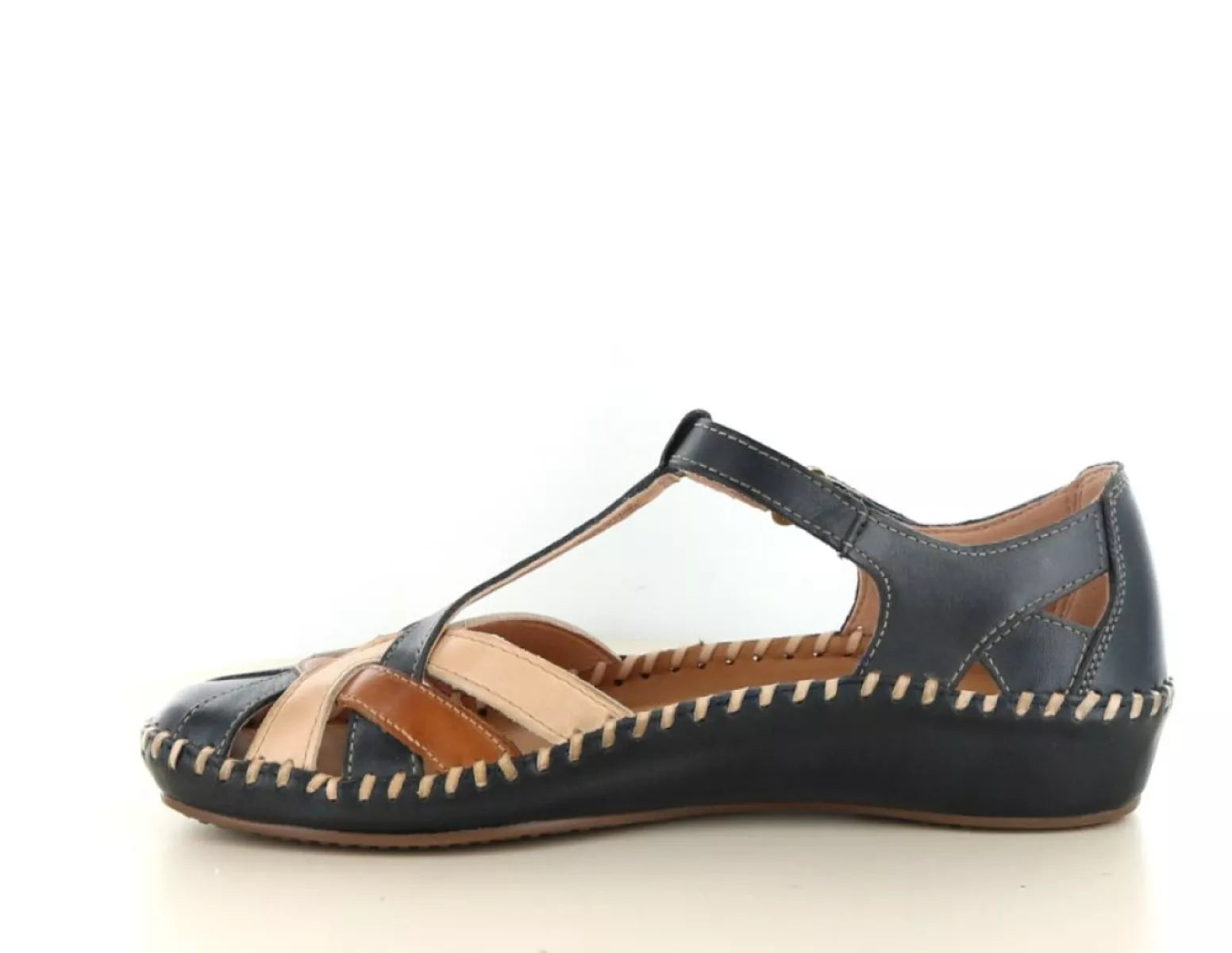 Die Pikolinos Puerto Vallarta 655-0732 in Marineblau ist eine elegante Damensandale mit Riemen über dem Spann, die höchsten Tragekomfort und eine feminine Optik vereint. Das tiefblaue Leder wird durch dezente beige und cognacfarbene Akzente ergänzt – eine zeitlose Farbkombination, die Ihre Sommergarderobe perfekt abrundet.