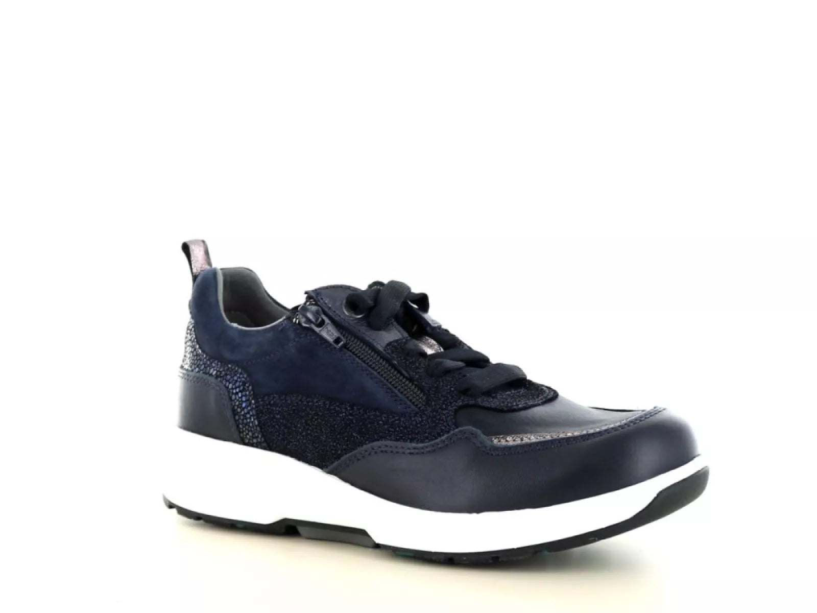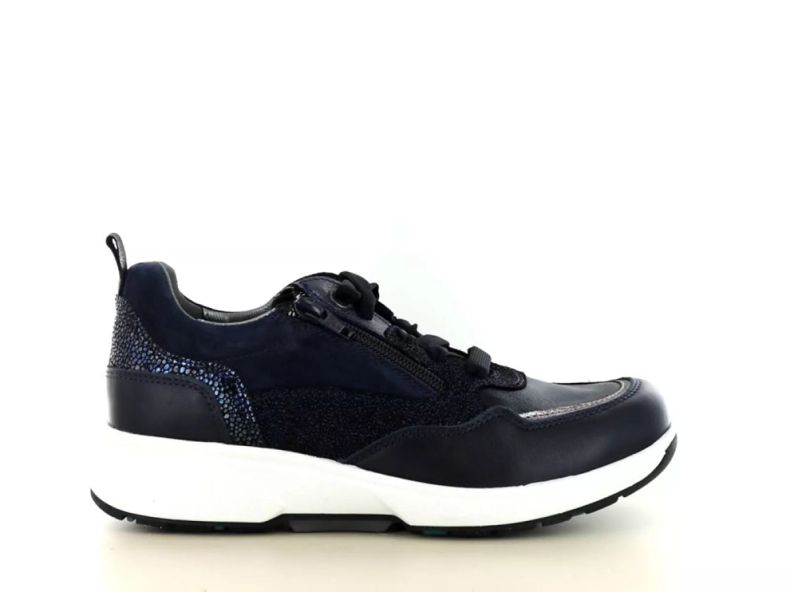 Der Xsensible Stretchwalker 30215.3 Grenoble in Navy vereint Funktionalität mit Eleganz. Dieser Damen-Sneaker ist aus hochwertigem Nubukleder und Leder gefertigt und sorgt so nicht nur für einen luxuriösen Look, sondern auch für Langlebigkeit. Schnürsenkel und Reißverschluss erleichtern das An- und Ausziehen, während die H-Weite perfekt für breitere Füße ist.