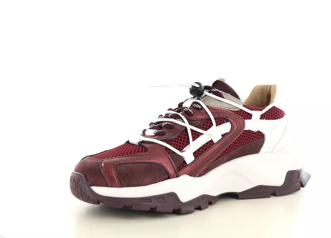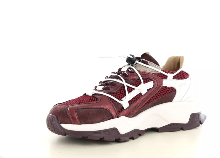DWRS Label Isola – Damen-Sneaker aus bordeauxrotem/cremefarbenem Leder