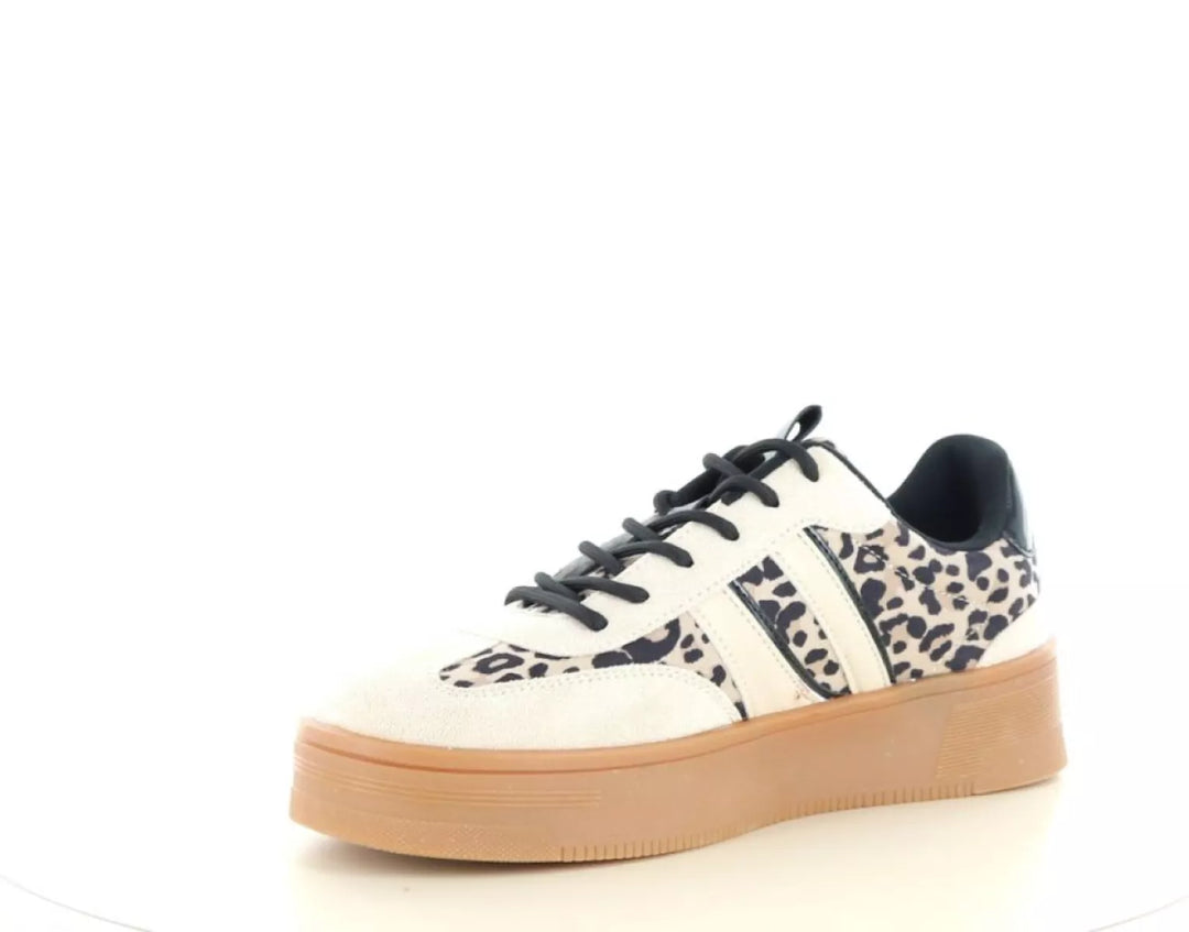 • Modischer beiger Sneaker mit verspieltem Leopardenmuster