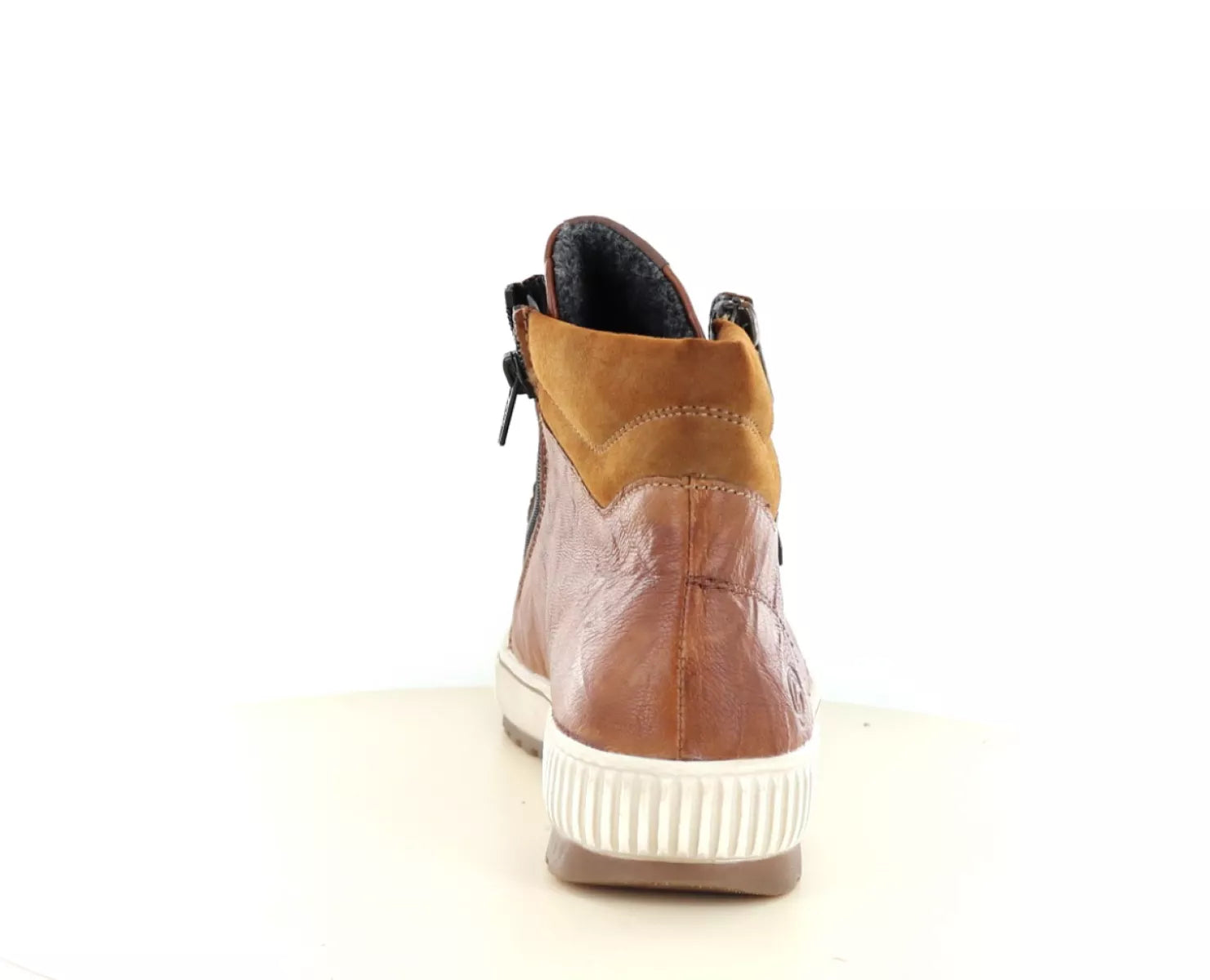 Remonte D0772 – Cognacfarbener Damen-Schnürschuh aus Leder mit Reißverschluss