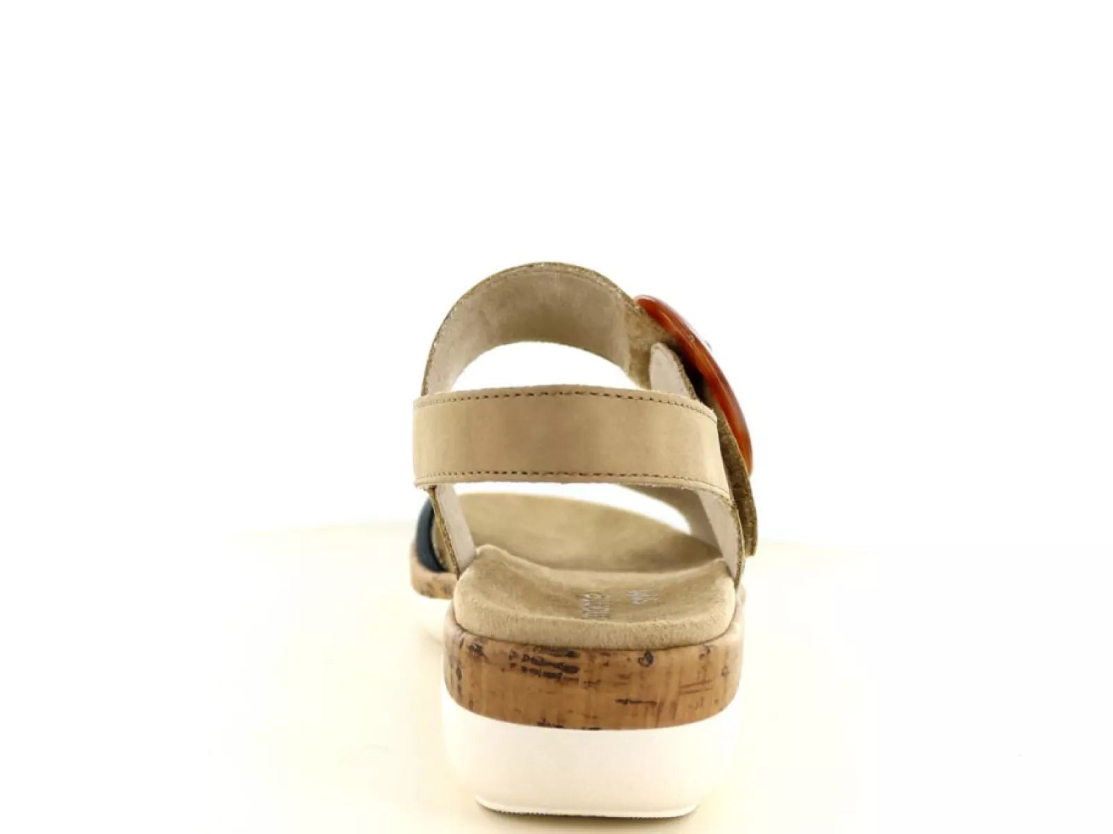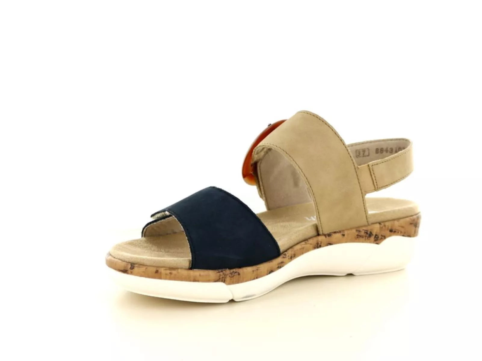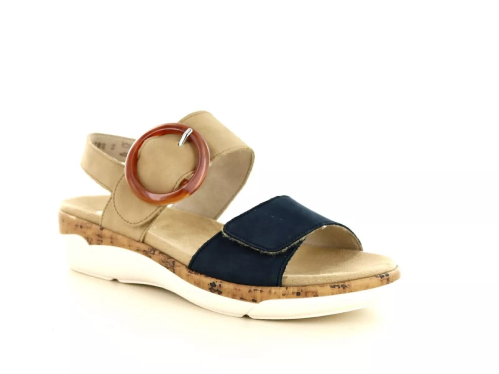 Die R6853 von Rieker ist eine wunderschöne Sandale aus Kunststoff für Damen. Diese Sandale ist in der Farbe 60 Pazifik/Sand erhältlich. Der Verschluss erfolgt mittels Klettverschluss.