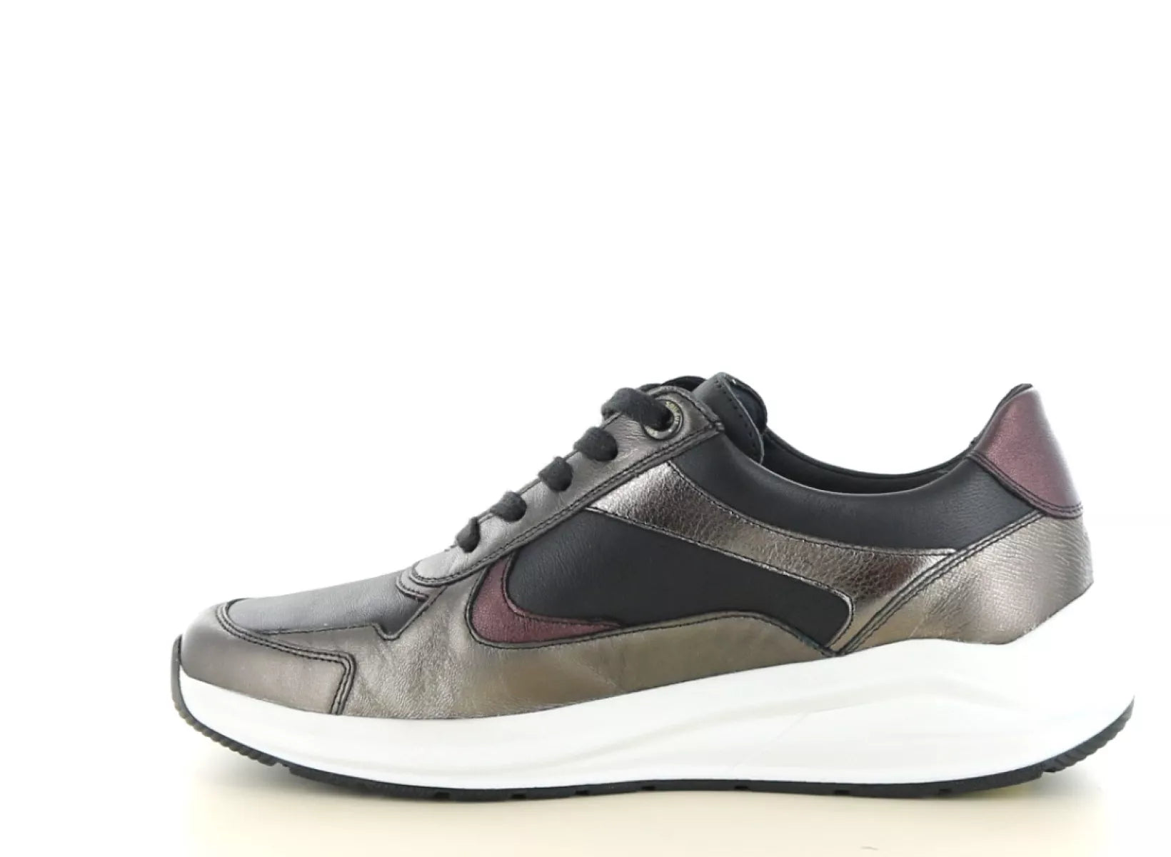 • Luxuriöser Damen-Sneaker aus hochwertigem Leder in Metallic-Schwarz-Kombination