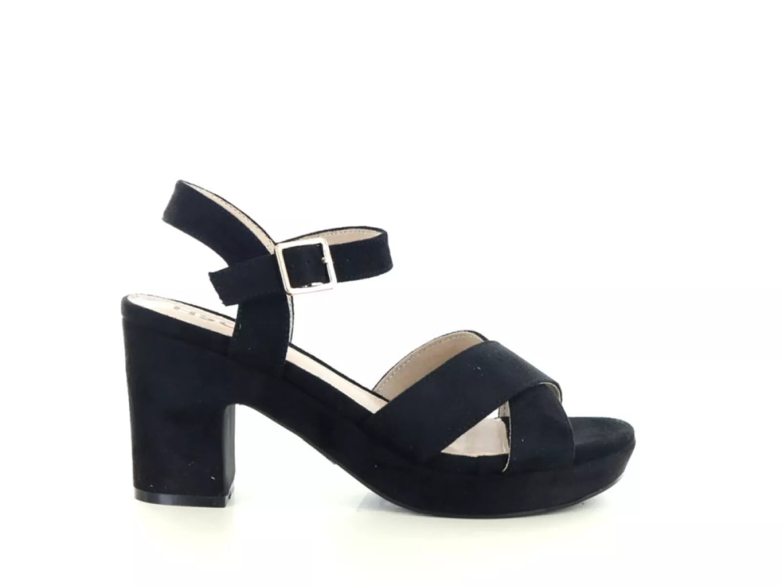 Vervollständigen Sie Ihr Sommeroutfit mit der Absatzsandale Posh by PS Poelman C0047 in Schwarz . Diese elegante Damensandale aus synthetischem Wildleder hat einen bequemen Blockabsatz , der für zusätzliche Länge und Stabilität sorgt. Die leichte Plateausohle unter dem Vorfuß macht diese Sandale überraschend bequem, auch wenn Sie den ganzen Tag unterwegs sind.