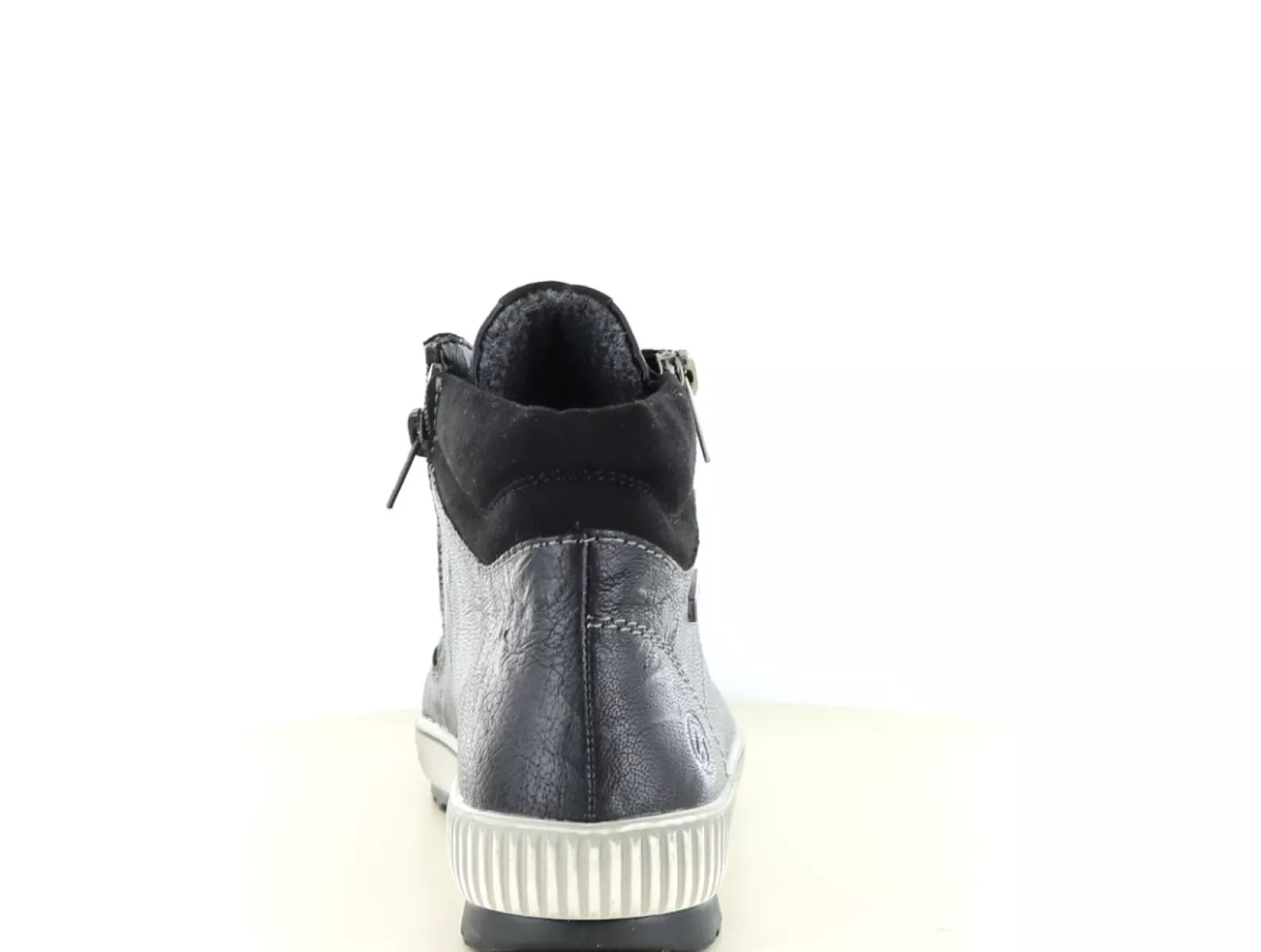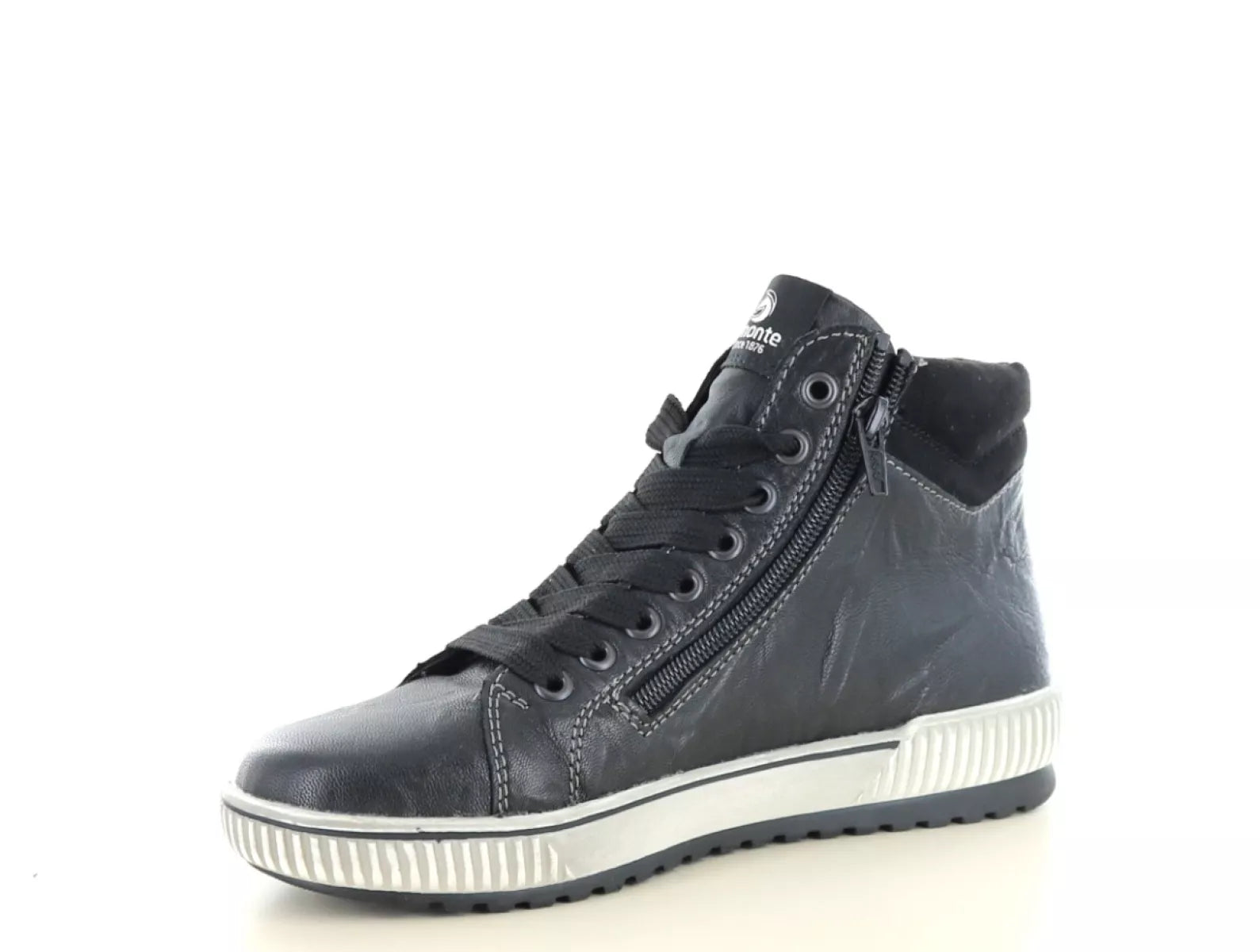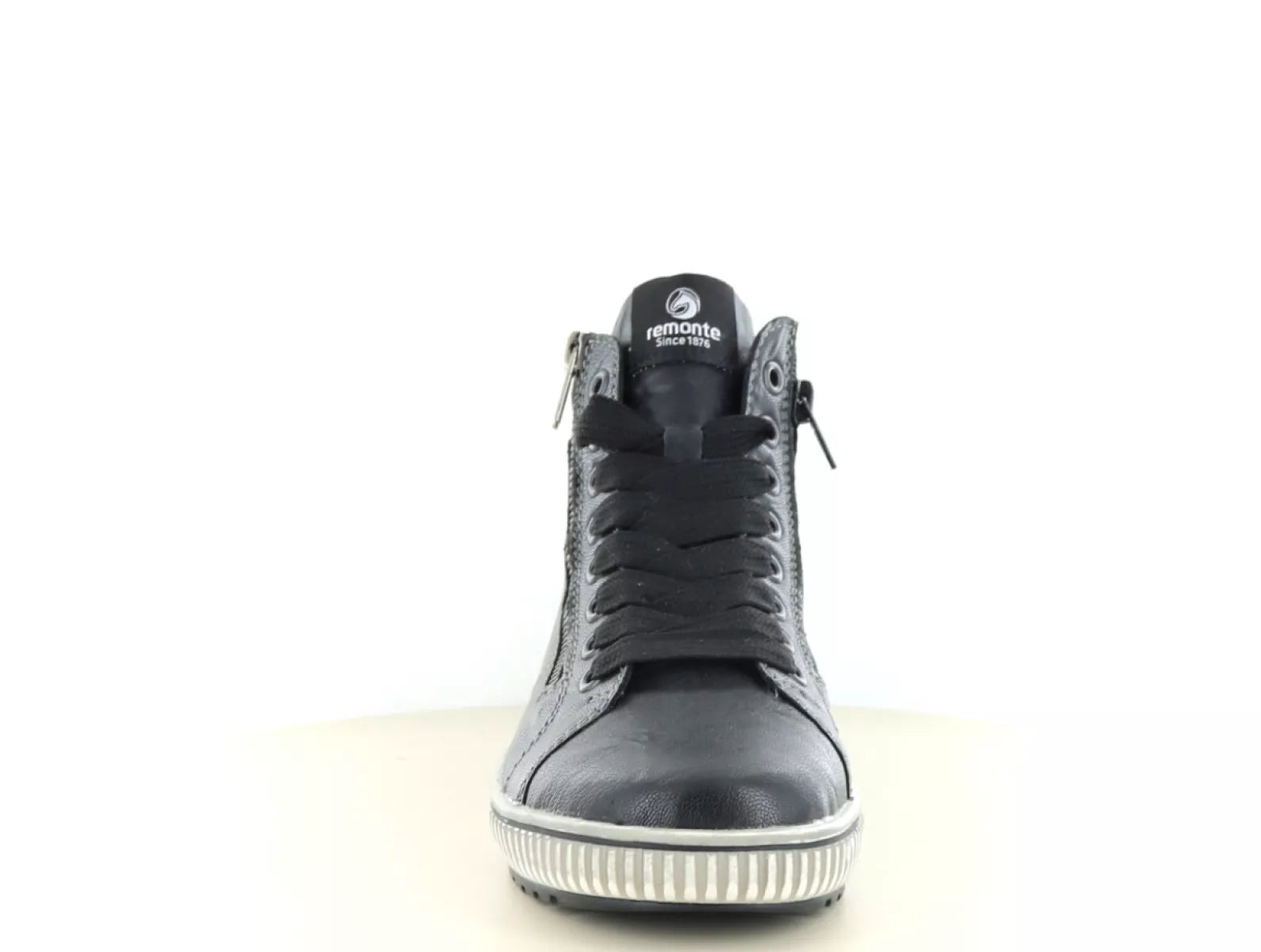 Remonte D0772 – Sportlicher Damen Schnürschuh mit Reißverschluss aus schwarzem Leder