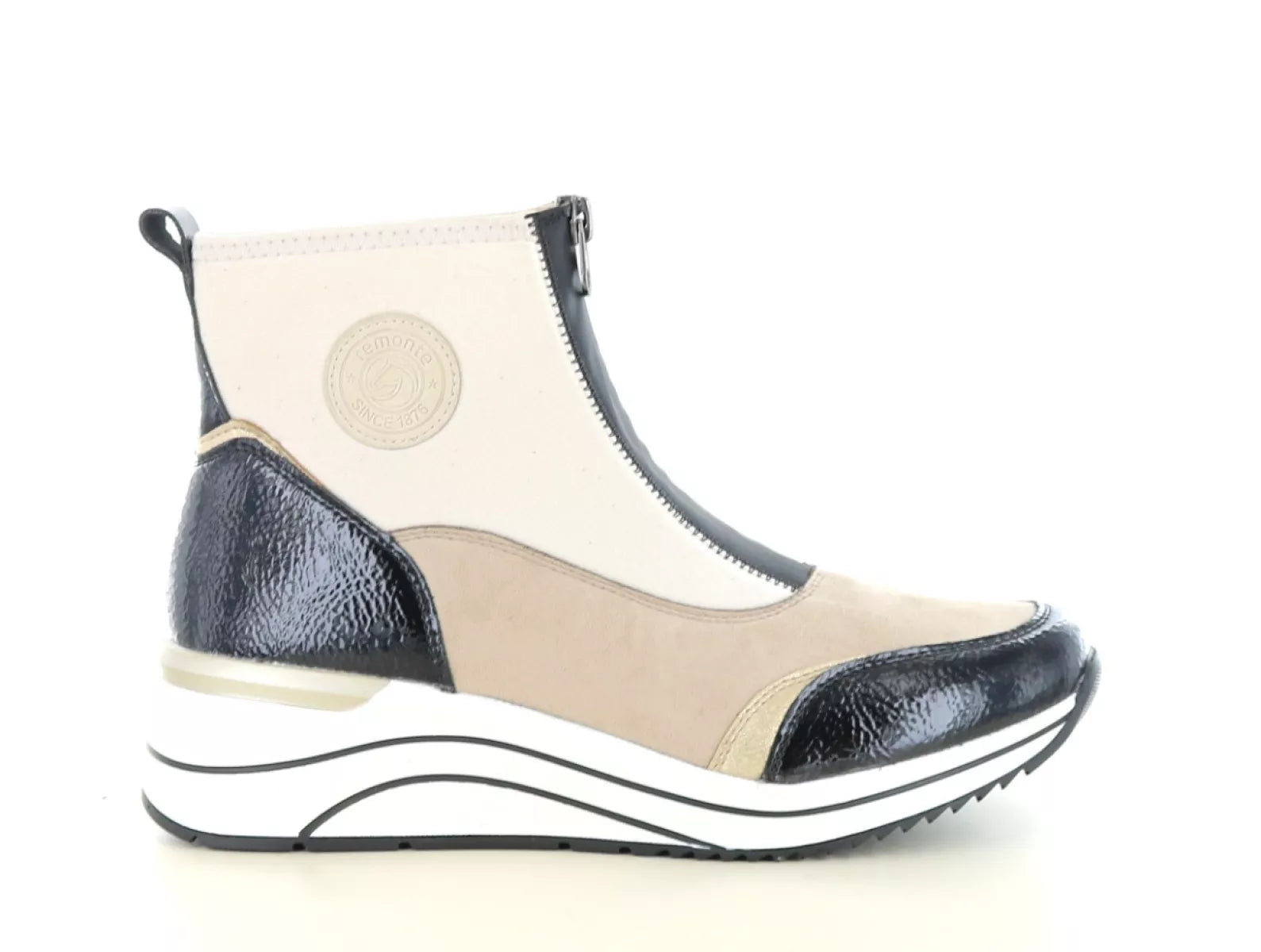 Remonte D0T78 – Sportliche Damen Stiefeletten mit Reißverschluss in Schwarz/Jute