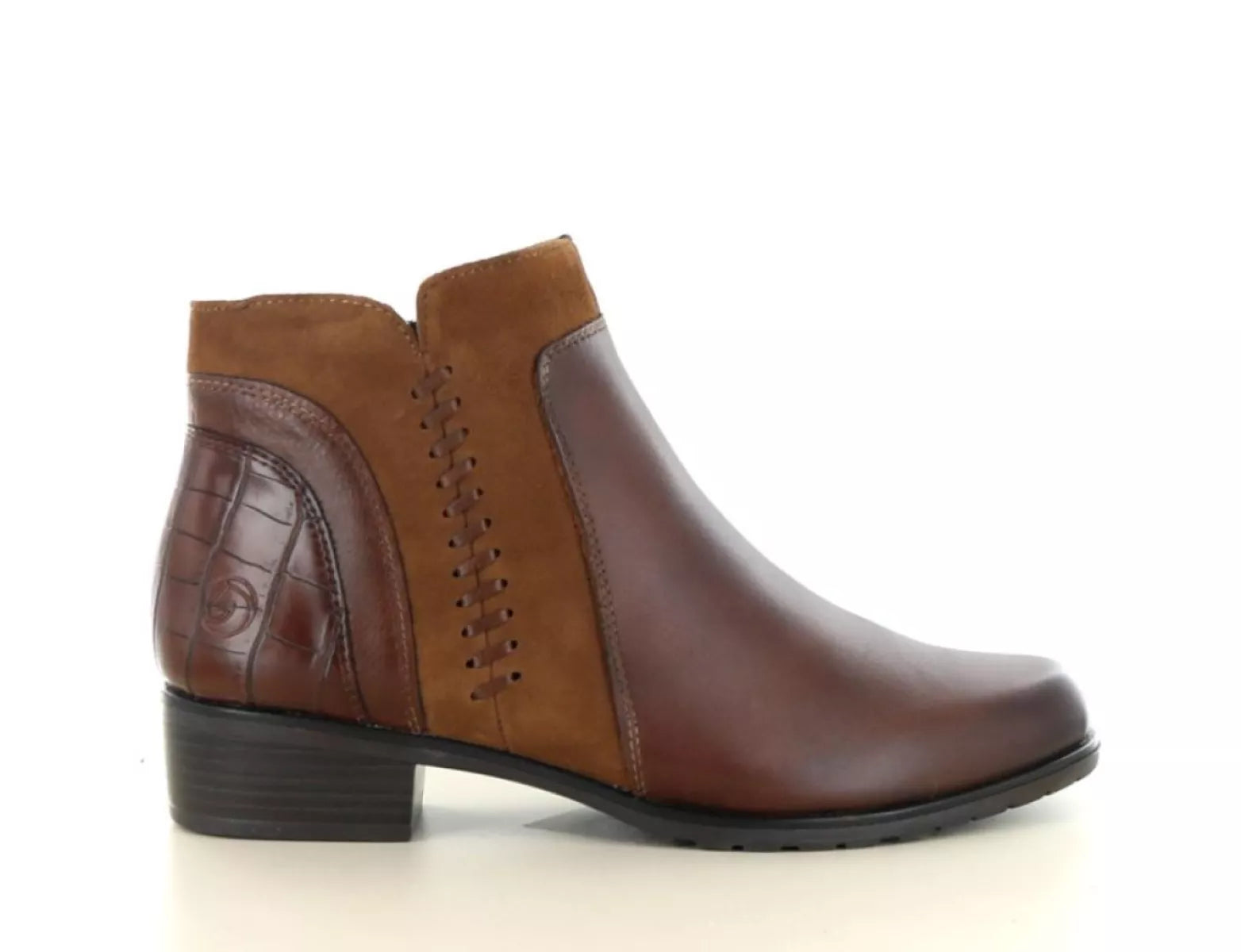 Der Remonte D6893 Stiefelette in Kastanienbraun/Cognacbraun vereint Stil, Komfort und Qualität in einem Schuh. Dieser elegante Damenstiefel ist aus einem hochwertigen Leder-Wildleder- Mix gefertigt und mit einer dezenten Krokodilprägung an der Ferse versehen, die für einen modernen und luxuriösen Look sorgt. Der praktische Reißverschluss erleichtert das An- und Ausziehen, während die normale Passform (Weite G) für ganztägigen Tragekomfort sorgt.