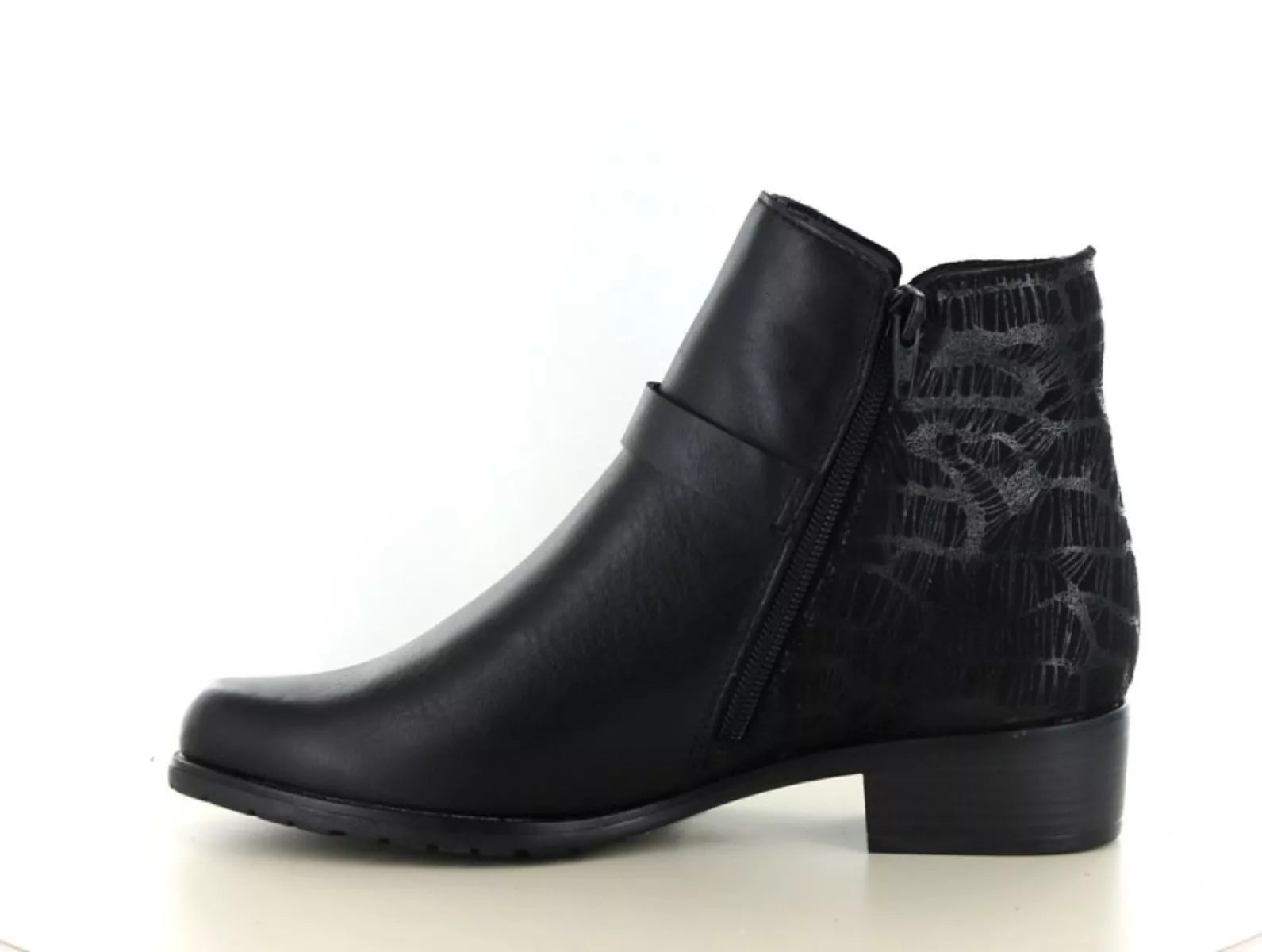 • Elegante schwarze Stiefeletten für Damen mit dezentem Krokodil-Print-Akzent